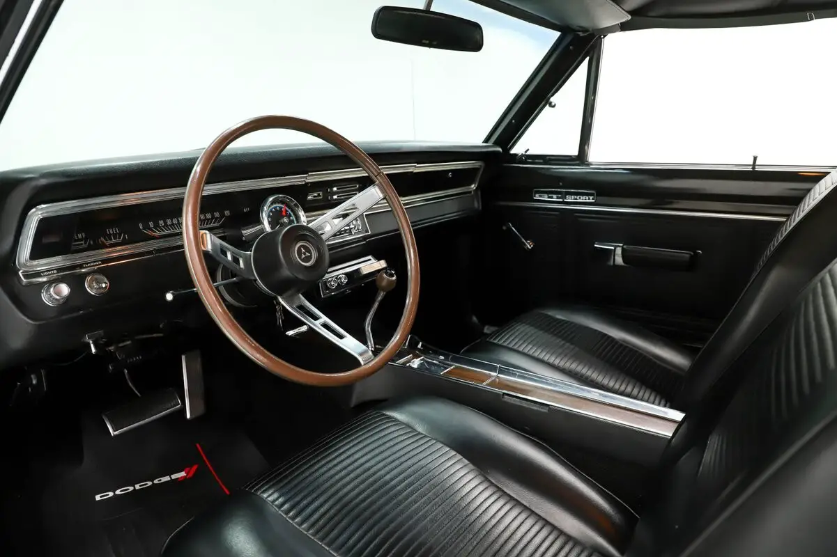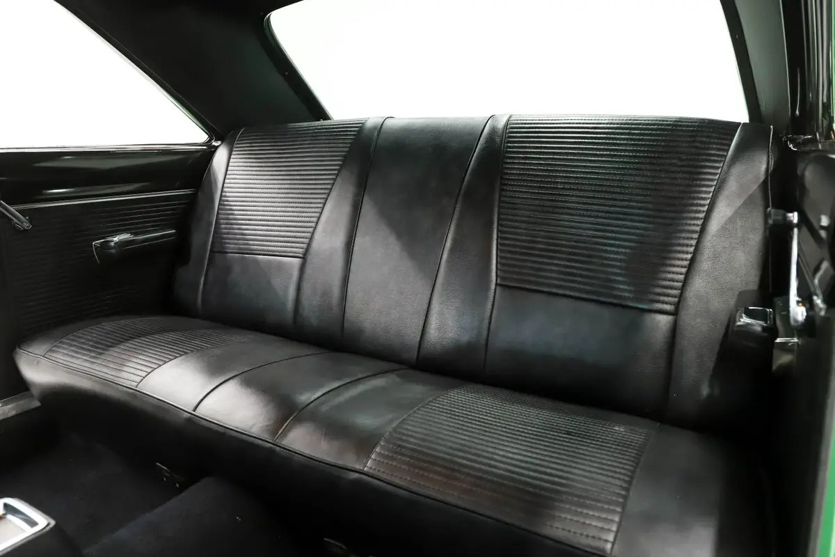 EXTERIOR: Believed to be the original paint! I just inspected it closely and other than a few minor blends I agree it is original paint. Overall, it shows great, with a gloss finish. Some of the edges are buffed thin. It has original glass including windshield which is a good indicator of low miles. Arguably the rarest of all Chrysler high impact colors Code F6 Bright Green was only available for a limited production run in the spring of 1969. The seasonal availability of the color not only makes it incredibly rare but also earned it the nickname "Spring Green". Even at the most prestigious of events, you'll be lucky to find a real deal "Spring Green" car. A new vinyl bumble bee stripe was just added. The original vinyl top presents well. The chrome and trim is exceptionally nice. The fender mounted turn signals are a very cool original option too. It's sitting on body color painted rims with poverty hubcaps and new BFG radial red line tires.