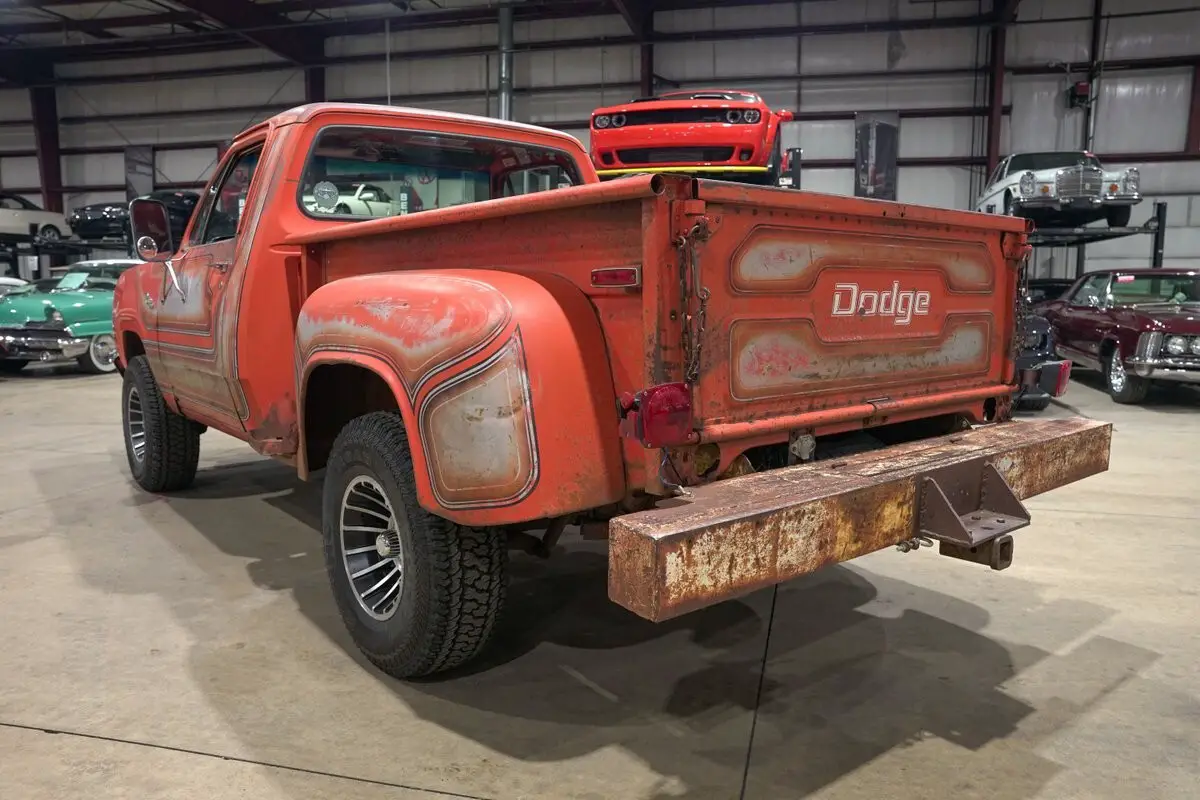 GR Auto Gallery is excited to present this 1977 Dodge Power Wagon, finished in bold Spitfire Orange and wearing just the right amount of honest patina. This is the kind of truck that doesn't try to hide its history-it proudly displays it. Faded gold accents running down the sides add depth and character, telling the story of a Power Wagon that earned its look through years of real use rather than a fresh coat of paint. The flareside bed, bed-mounted spare tire, and aggressive off-road tires give it a stance that feels equal parts vintage workhorse and trail-ready bruiser.