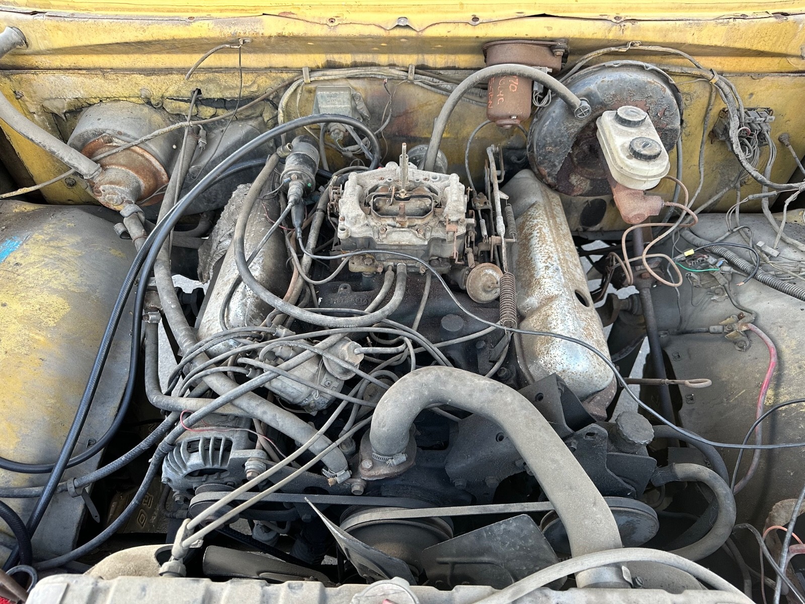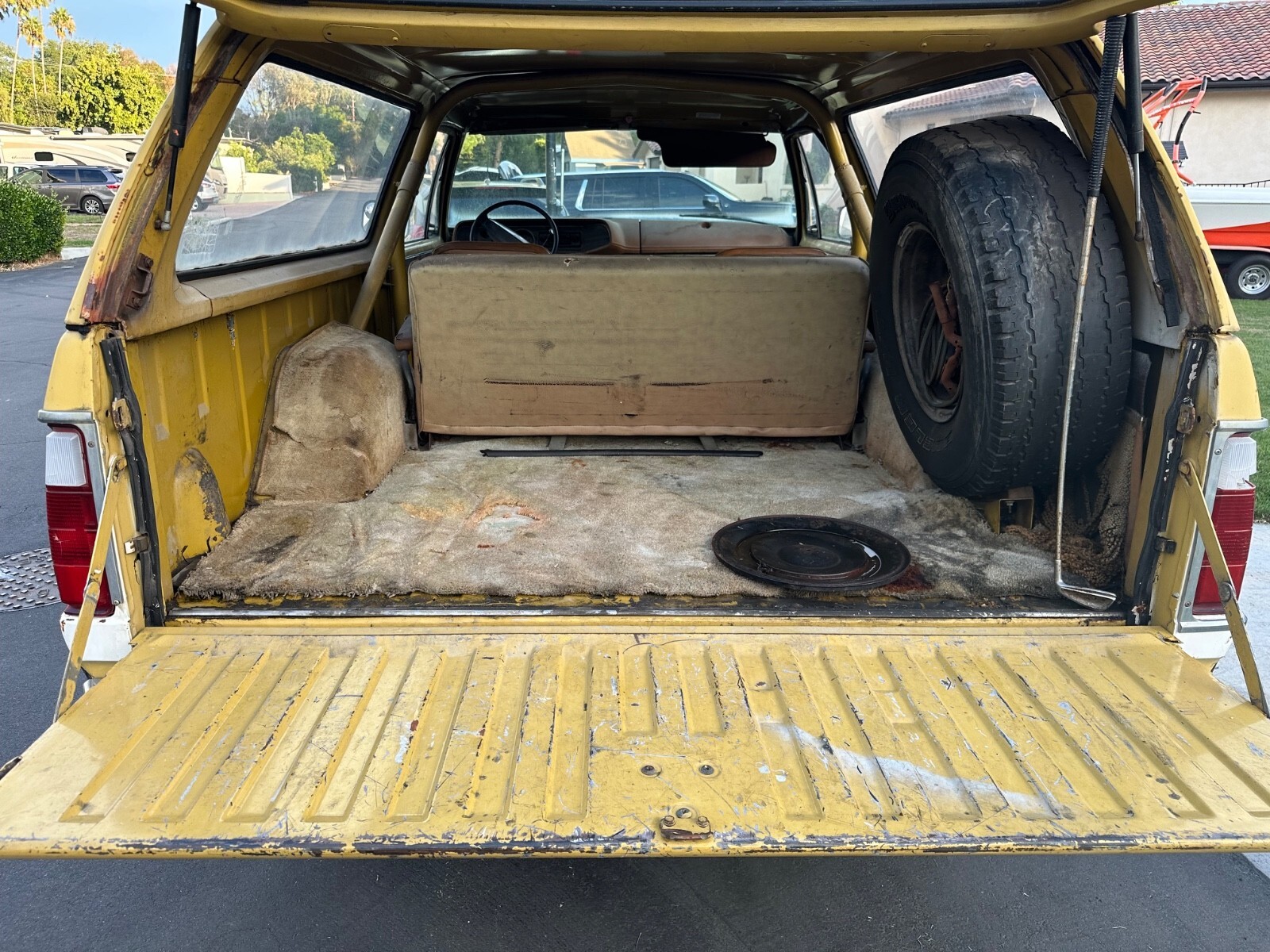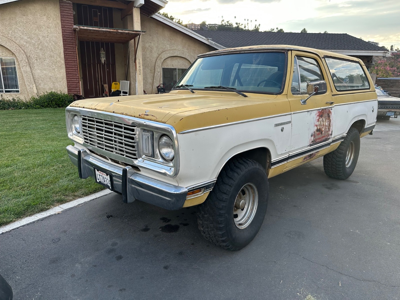 This Ramcharger was purchased by me about a year ago out of a storage lot in Southern California. I put a battery in it and some fuel down the carb and it lit up and ran very well. No noise just smooth idle. It has a plastic tank in it which I pulled all the bad fuel out of it and added fresh gas. I rebuilt the carb and replaced the fuel pump and lines. It runs now off the tank. The brakes were flushed, new fluid added, and bled and now function well. This truck is road worthy but still should get some shake down miles before you drive it cross country. The truck is in great shape but has some areas that will need rust repair. Mainly it's the removable top. There is some surface rust on some of the body panels and the hood is rusty. I put some old tires on it so that they hold air. It has its original 5 slot stamped steel wheels on it. The engine has all of its original emission's parts still on it and I imagine it would pass smog here in California. Clean California title.