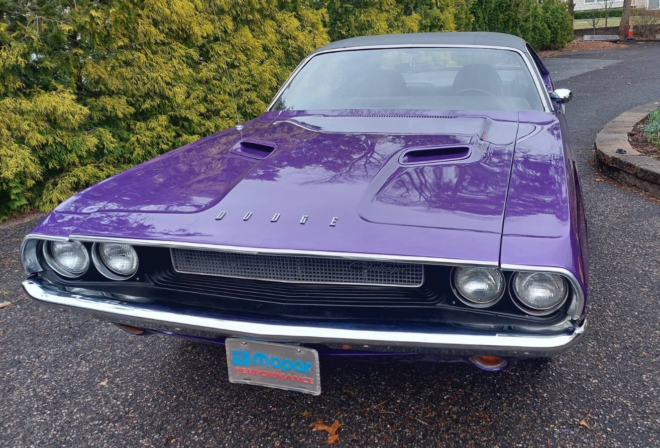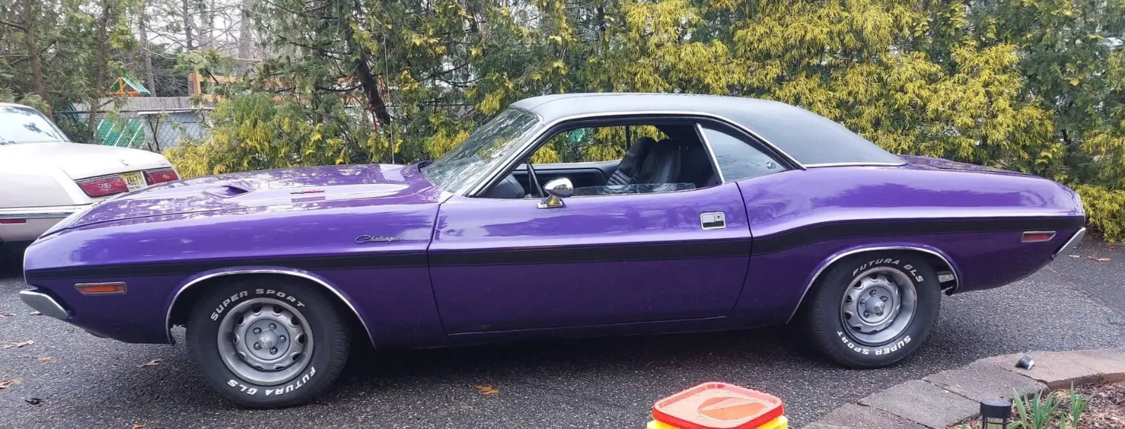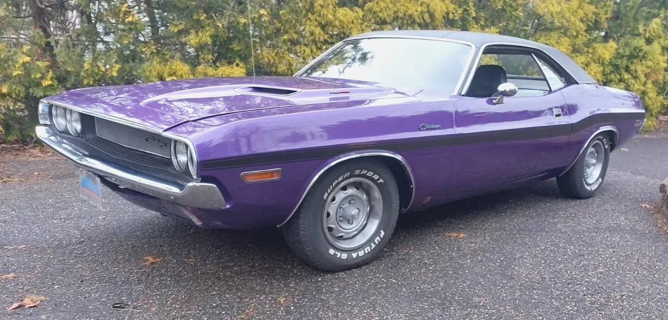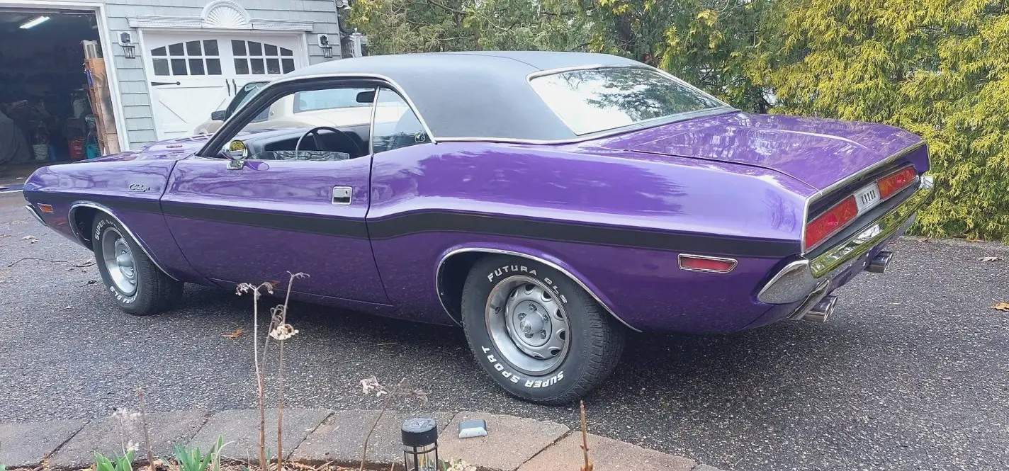 I AM OFFERING THIS CHALLENGER THAT HAS BEEN IN RESTORATION FOR OVER TWO YEARS JUST IN TIME FOR CRUIZES ..THERE IS ALOT TO GO OVER SO I WILL DO MY BEST SHE IS JUST OUT OF THE BODY PAINT SHOP AND HAS BEEN SANDED TO BARE METAL.THE ORIGINAL COLOR WAS B5 BLUE AND INTERIOR AS WELL.. SHE STILL HAS 90% ORIGINAL SHEET METAL WITH A NEW SPORT HOOD AND TRUNK LID ADDED.NEW FLOORS AND TRUNK FLOOR WERE WELDED IN AND SEALED. ALL THE FRAME MEMBERS ORIGINAL AND SOLID.. ALL THE TRIM WAS REMOVED AND EITHER REPLACED OR RESTORED..SHE WAS GIVEN MULTIPLE COATS OF EPOXY PRIMER,BLOCK SANDED AND GIVEN THE FIRST REPAINT OF BASE COAT CLEAR COAT FC7 CHRYSLER PLUM CRAZY AND AS YOU CAN SEE IN THE PICS,CRAZY BEAUTIFUL. THE ORIGINAL 318 IS LONG GONE AND NOW SPORTS A BUILT 440 BACKED UP WITH 727 AUTOMATIC TRANSMISSION WITH CUSTOM WELDED DUAL EXHAUST THROUGH STAINLESS TIPS ALOT OF FUN TO DRIVE AND REALLY TURNS HEADS...COMPLETE RESTORATION INCLUDES NEW BRAKES ALL ARROUND NEW SUPER SPORT 2157014 TIRES ON RALLY WHEELS ..FRONT END WAS CHECK AND ALIGNMENT DONE WHEN THE TIRES WERE PUT ON . THE INTERIOR WAS GONE OVER WITH LEGIONDARY BUCKET SEAT COVERS NEW CARPET HEADLINER AND DASH..I BELEIVE THE CAR ORIGINALY CAME WITH BENCH SEAT AND COLUMN SHIFT NOW SPORTS AN ORIGINAL AND RESTORED CONSOLE WITH SLAP STICK SHIFTER ..SHE IS ALOT OF FUN TO DRIVE! I HAVE DISCRIBED THIS CAR AS BEST POSSIBLE AND HOPE THE PICTURES HELP WITH CONDITION- FOR 56 YEARS OLD SHE IS A REALLY NICE DRIVER AND WOULD STILL LOOK GOOD NEXT TO THOSE PUT PUT TRAILER QUEENS.AS WITH VEHICLES THIS AGE,THERE IS NO WARRANTEE EITHER EXPRESSED OR IMPLIED...PLEASE ASK ALL QUESTIONS BEFORE YOUR BID OR OFFER TO BUY..
