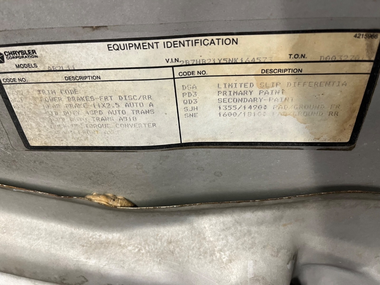 | VIN: | 2b7hb21y5nk164573 |