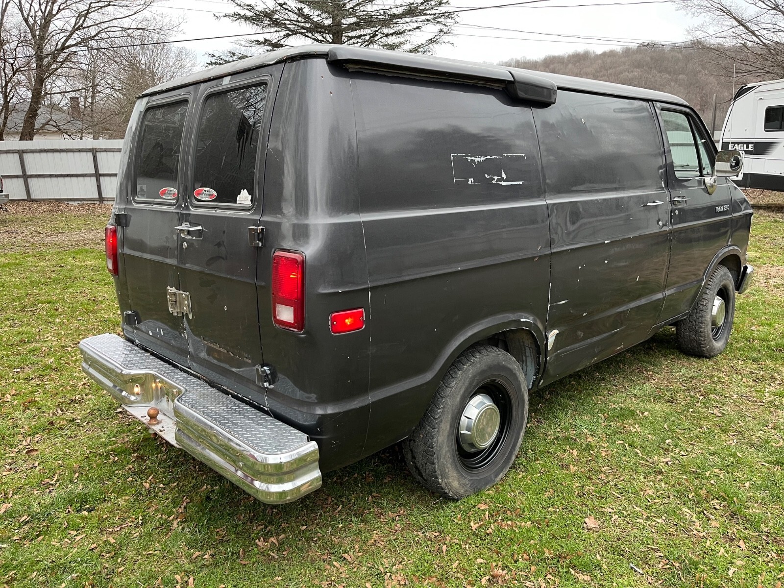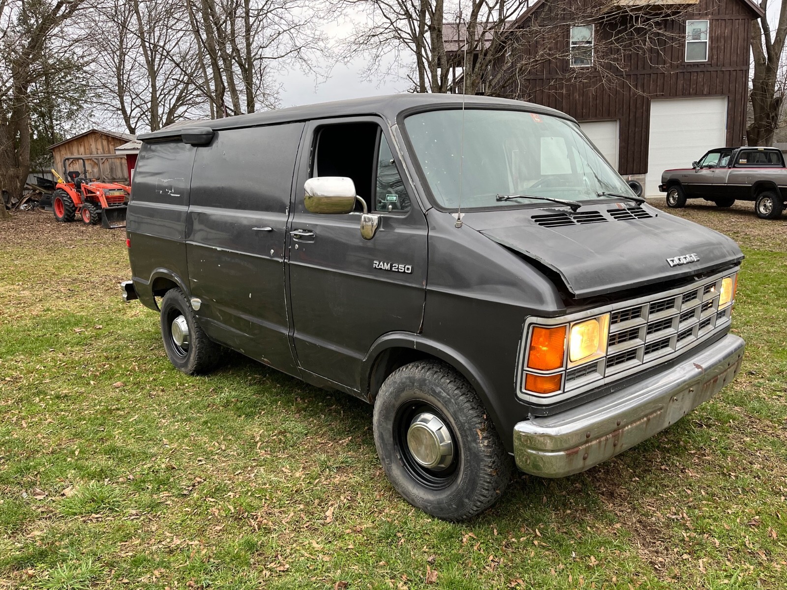 I bought this van off a guy that had it at his shop for a while . I was gonna use it as parts storage but after seeing how clean and rust free it was i said this van has potential for someone to make a cool classic van out of ! I also figure i cant get as much into it (storage wise as a longer van so i decided to sell it ) . I cleaned out the air cleane, added fresh ga, added new oil and filte, topped off the antifreeze ( few oz ) and the van fired up and ran pretty good ! I actually took it for a 10 mile test ride and it shifted fine and stopped straigh, wipers worked and i even heard the a/c clutch kick on but must be low on freon because it stopped blowing cold air . I actually had a dodge van enthusiast stop by and say its a valuable van because it has the old body style with the new MAGNUM V8 engine and overdrive trans - combined with it being a short van with beefed up factory half ton suspension to make it a 250 . he also said factory air conditioning and it being rust free are important - I asked him to take it for a spin just up the road and see what he though - he said tons of potential !