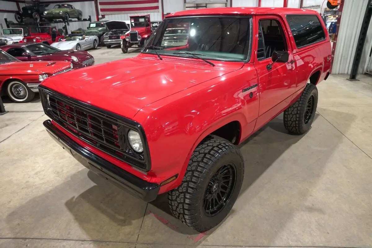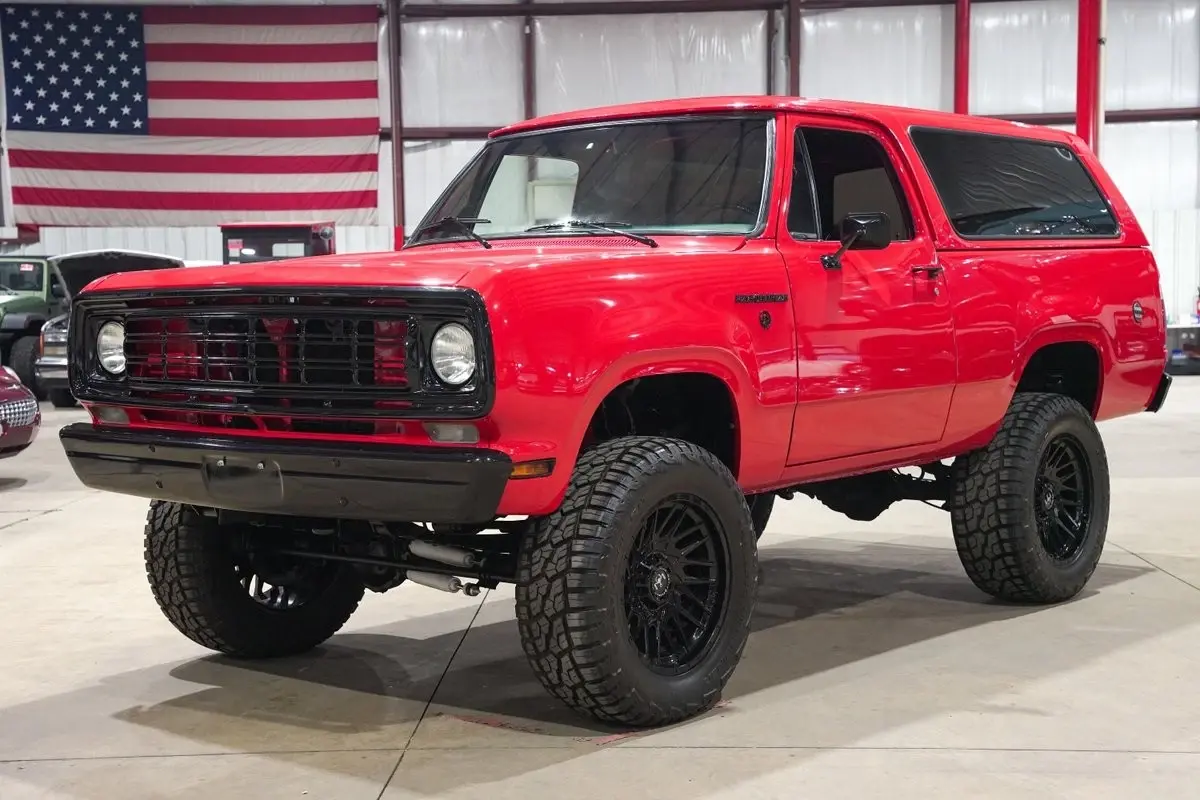 GR Auto Gallery is excited to present this 1976 Dodge Ramcharger finished in bold Red over a Black leather interior. This full size SUV has been fully restored and carries a commanding presence with its lifted stance and classic two door body style. The bright red paint gives it a strong visual impact, while the aggressive ride height reinforces its rugged, go anywhere personality. Early Ramchargers have become increasingly desirable, and this one stands out with both its condition and attitude.