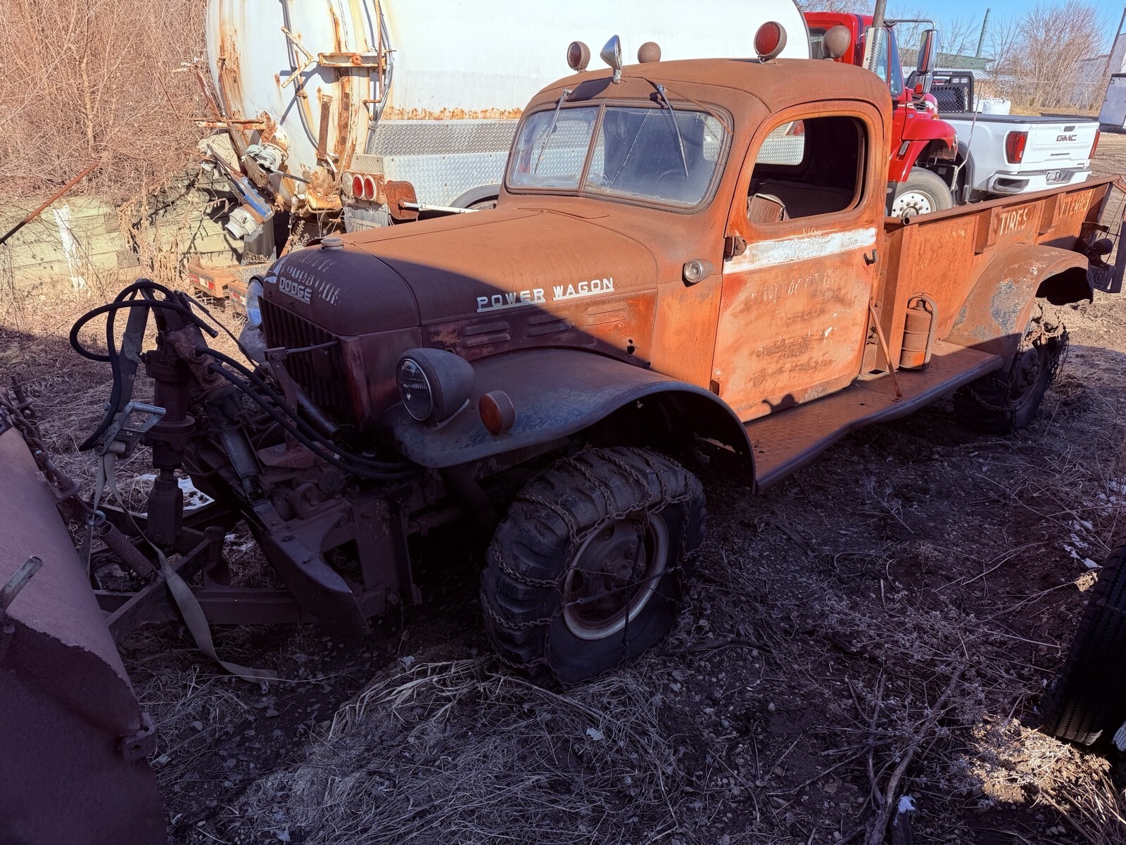Is an original dealer owned plow truck from Worthington, mn dodge dealer with dealer logos sill visible.