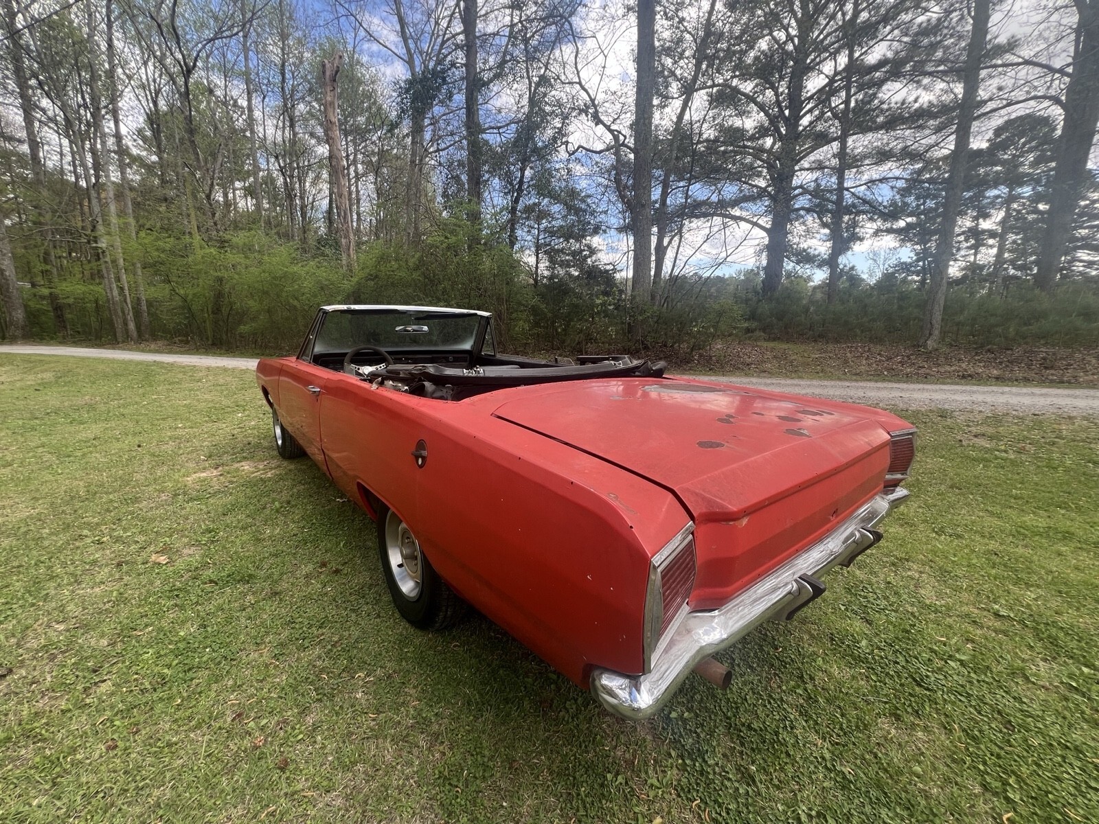 You are looking at a very solid project with a very Little amount of body rust. very straight car. it comes with all its trim and emblems only thing missing is the front bumper it’s a power top car and the top frame is in excellent condition. It has a 318 with 360 heads high rise intake new 600 carb dual exhaust. tranny works like it should. has good tires never cleaned out gas tank from setting so I added a auxiliary tank has new battery. needs brake work to be roadworthy and has a pinhole in the radiator. Fix them two things and you can drive it to work. has power steering power breaks runs good. Don’t miss out on this rare opportunity. the $500 deposit is nonrefundable. registered and insured in my name if you need a Shipper Google Uship for a free-quote they have been here and have fast shipping