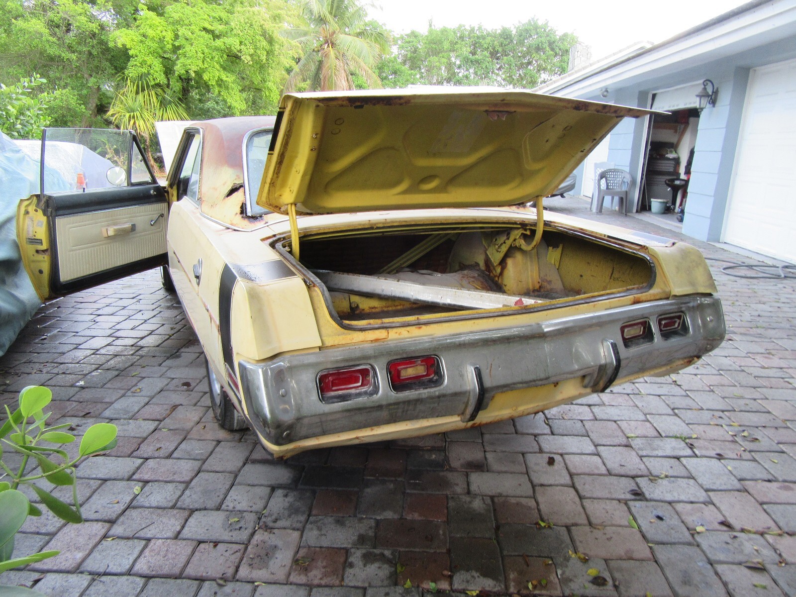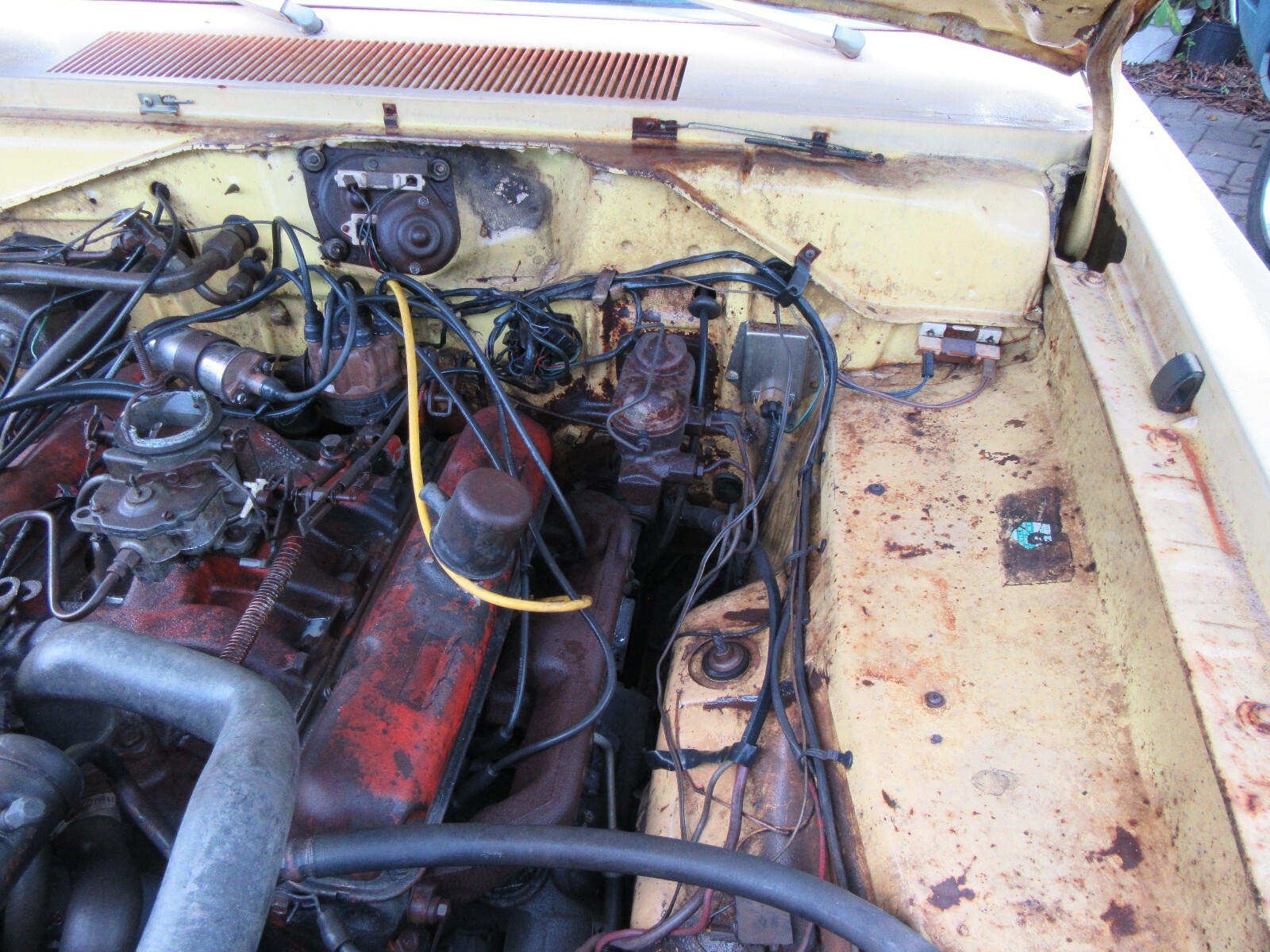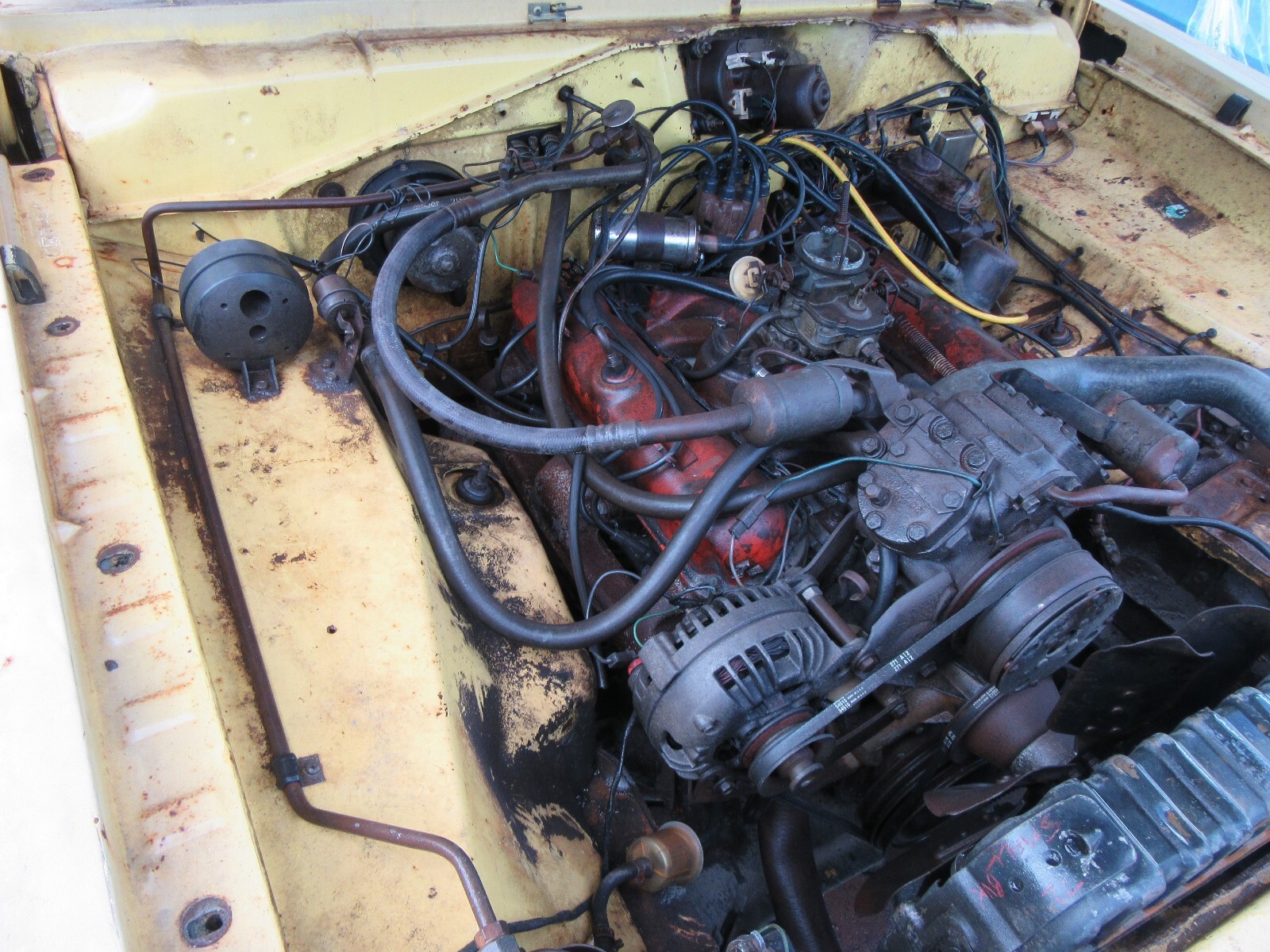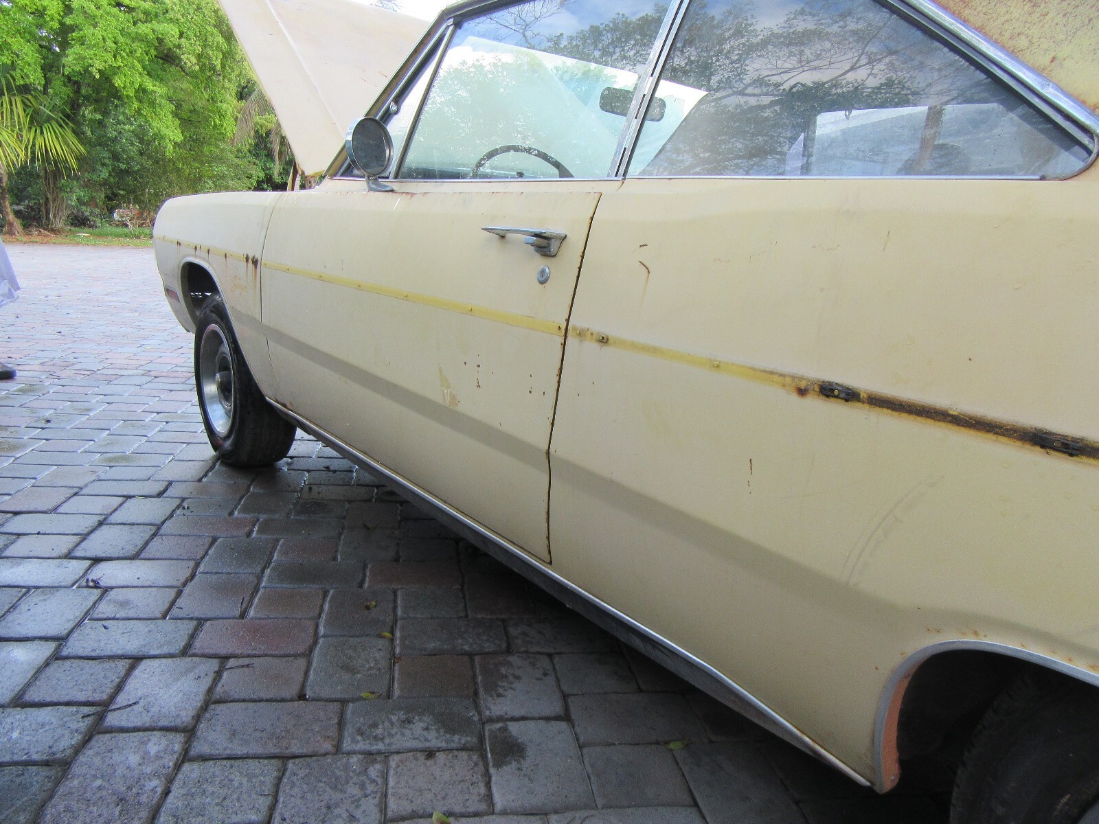 Here is a really nice optioned Dodge Dart Swinger. Factory Lemon Twist with a white interior. Non - Stripped and equipped. I took on too many projects at once and have to let some go. I will be glad to keep this car if it does not sell. Factory 318 V8, Automatic, center console, bucket seats, rally wheels (missing 1 center cap). It is in very decent shape. Other than a few rust spots, it is a very easy fix. It might be #'s matching engine and trans, but have not verified yet. All other numbers are matching and fender tag present. Have not tried to start yet, gas tank missing. Bumper in trunk. Hood latch missing. MAKE OFFER NOW AND IT IS YOURS. Nine54647566seven..... more pictures tomorrow at JunkorJewel.com a free spot.. Possible trade towards a Cuda or Challenger project or finished.