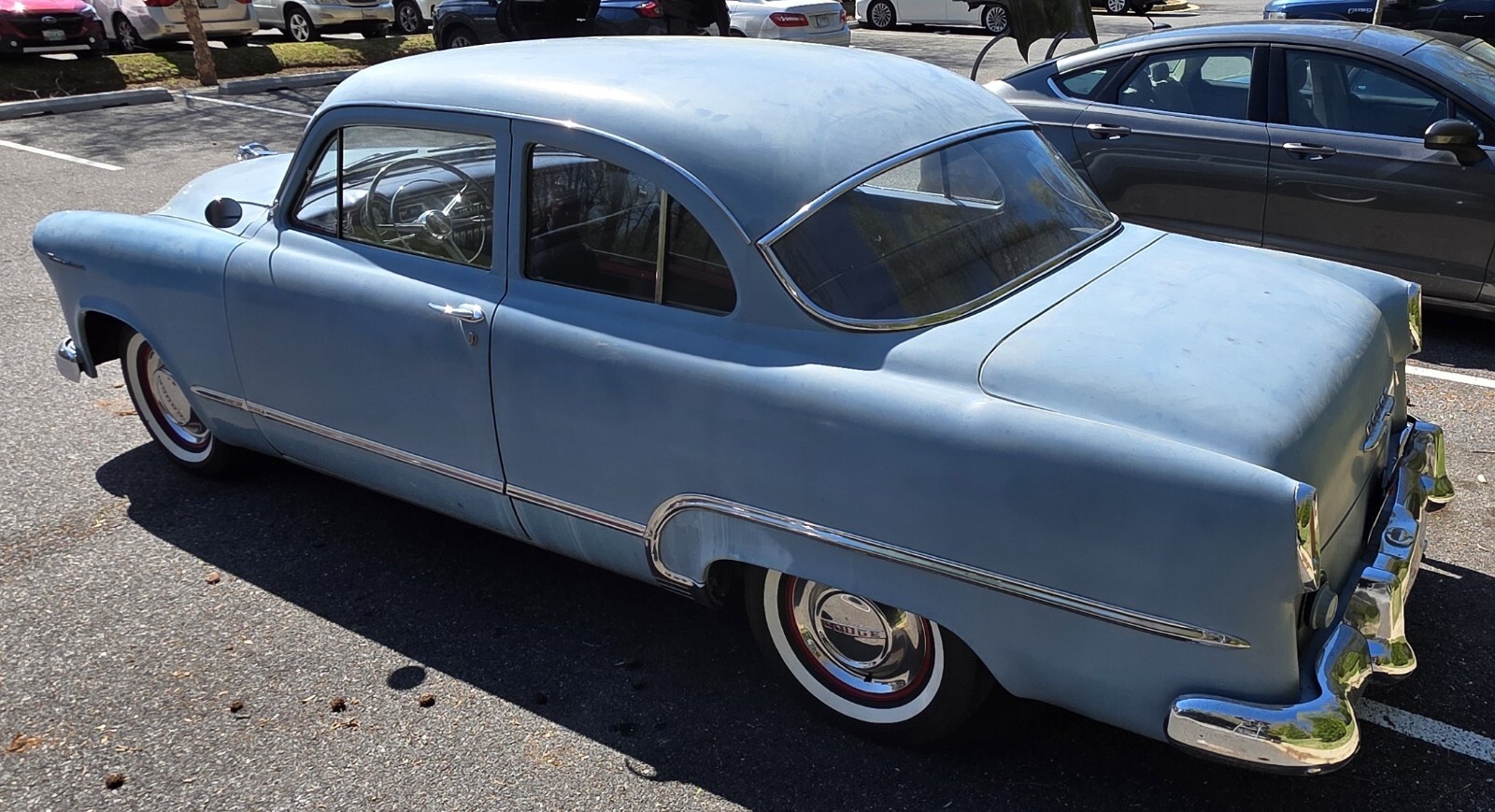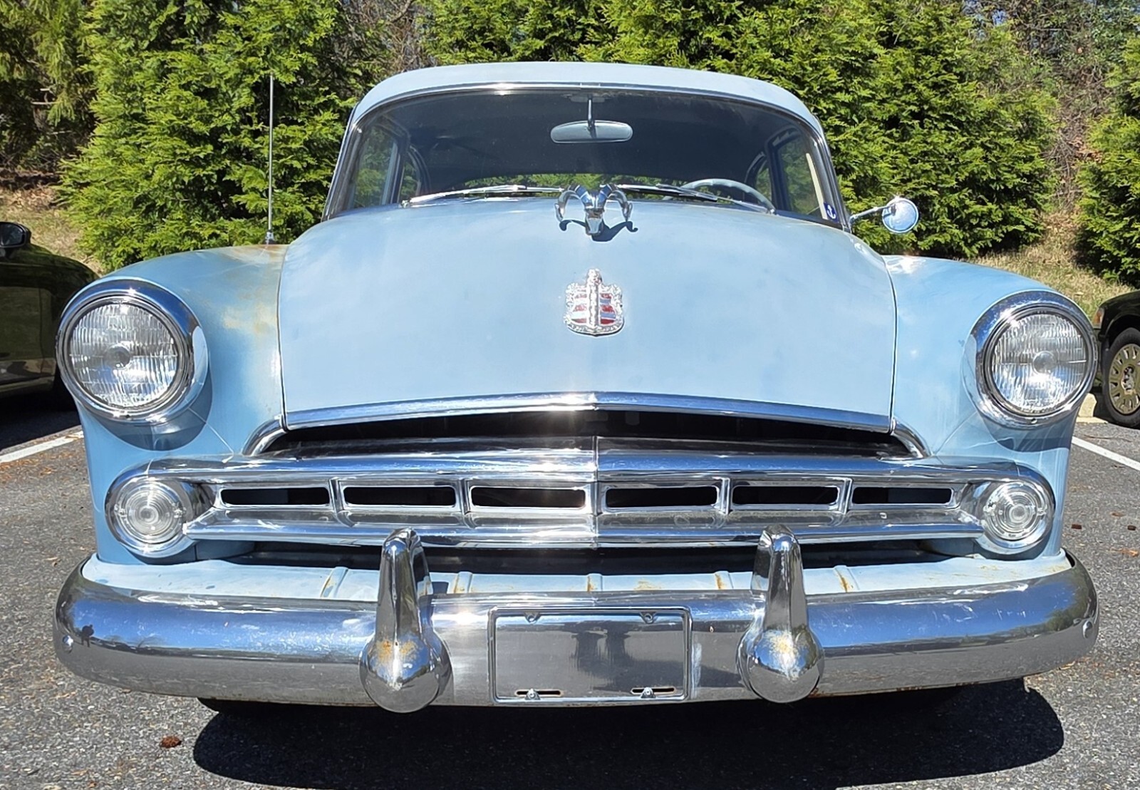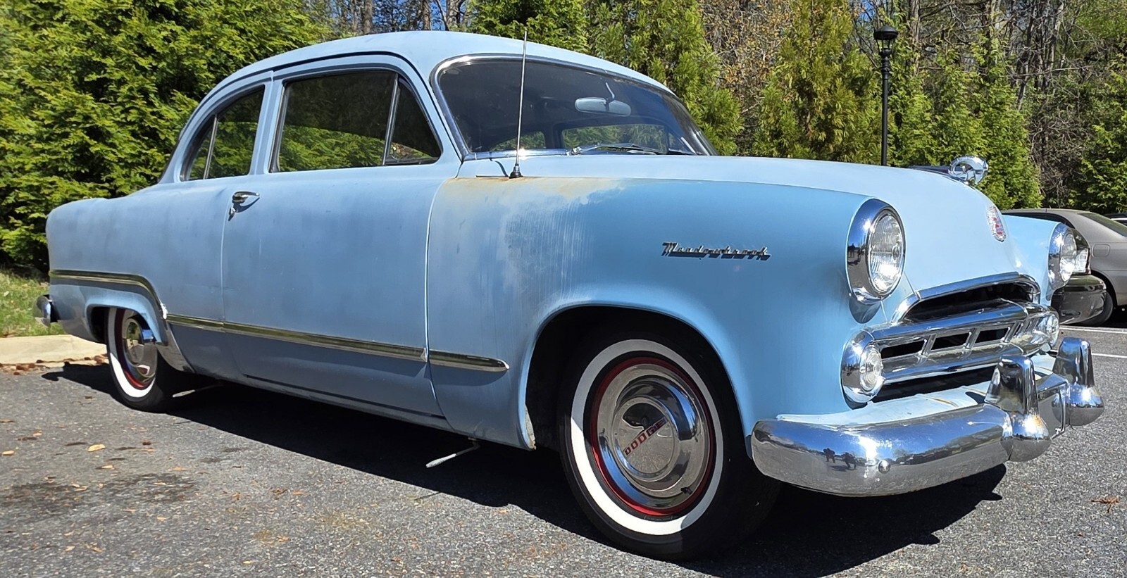 1953 Dodge Meadowbrook 2-door sedan in its original Arabian blue with a gray interior, and powered by the optional 241 cu. in. Red Ram Hemi boasting 140 horsepower and backed by a 3-speed manual transmission with overdrive. The car is being sold off as part of an estate, so the history is not complete. The mileage shows 24,500 (TMU).