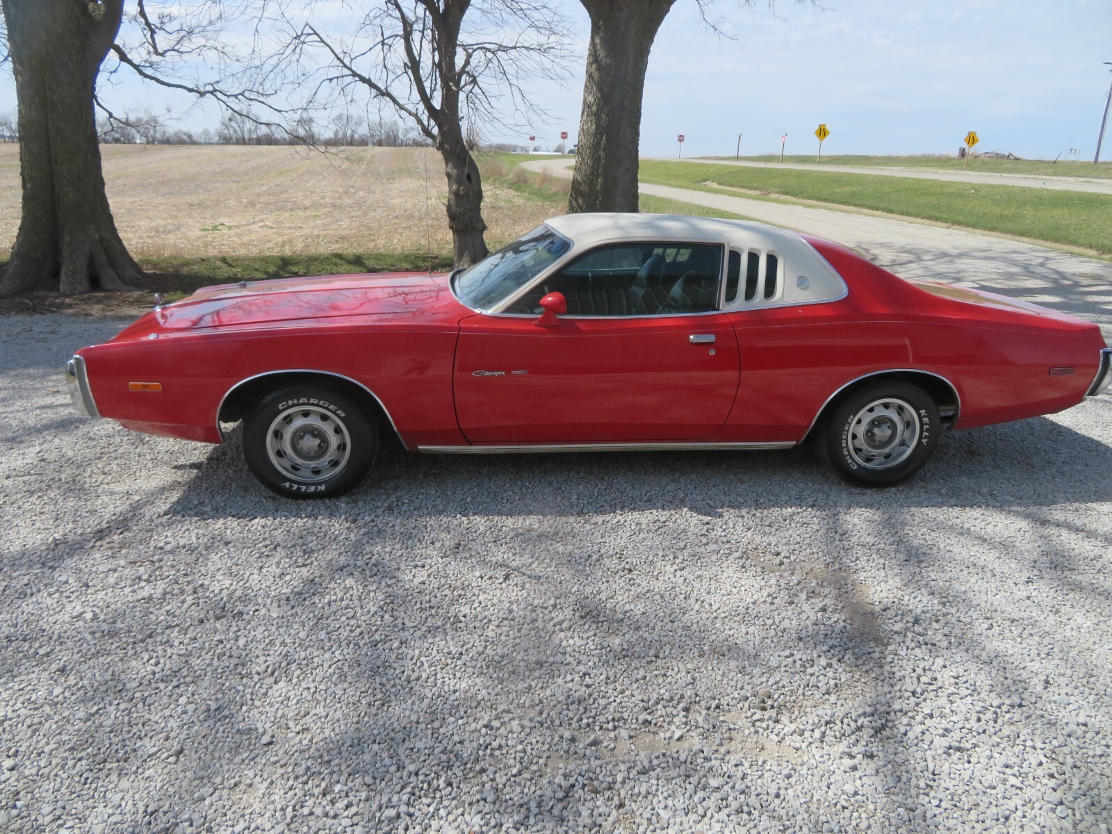 1974 DODGE CHARGER SE HIGH PERFORMANCE HP # MATCH ENGINE ONLE 204 PRODUCED WITH THE 440 HP U CODE VIN IS STAMPED ON ENGINE HP IS STAMPED ON PAD BUILD SHEET FENDER TAG ALL THERE SEE PICS THE CAR HAS EVERY STICKER AND TAG ON THE CAR SEE PICS IT IS A ORIGINAL COMPLETLEY RUST FREE ORIGINAL METAL CAR UNDER CARRIAGE IS SPOTLESS STILL RED UNDERNEATH FRAME RAILS EXCELLENT AIR CONDITIONING POWER STEERING AND BRAKES ALL GAUGES WORK INCLUDING TACH PERFECT CONSOLE INTERIOR IS ORIGINAL AND VERY CLEAN 94000 ORIGINAL MILES THE TOP IS ORIGINAL AND LIKE NEW NO RUST UNDER TOP WINDOWS ALL ROLL UP AND DOWN PROPERLY EVERYTHING WORKS DOME LIGHT TURN SIGNAL AND FENDER SIGNAL JUST A VERY CLEAN ORIGINAL CAR RUST FREE I HAVE CLEAN CLEAR TITLE THIS CAR HAS NEVER BEEN ADVERTISED SO PLEASE SERIOUS BIDDER ONLY PLEASE CALL WITH ANY QUESTIONS OR EMAIL MY RESERVE IS VERY FAIR FOR THE CAR IT RUNS AND DRIVES AS IT SHOULD SOUNDS VERY HEALTHY SMOOTH RIDING CHARGER.