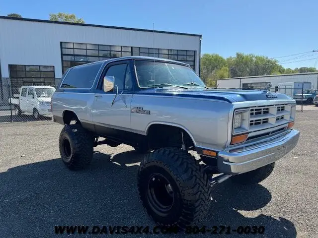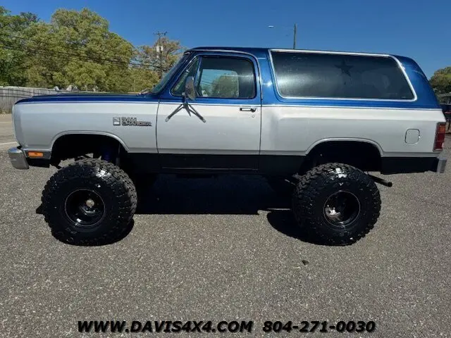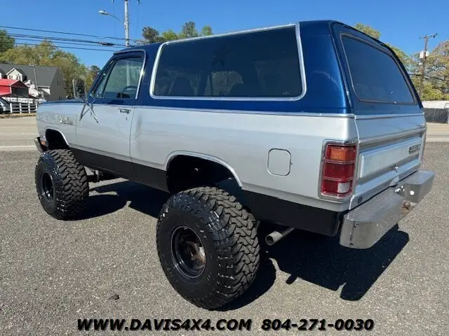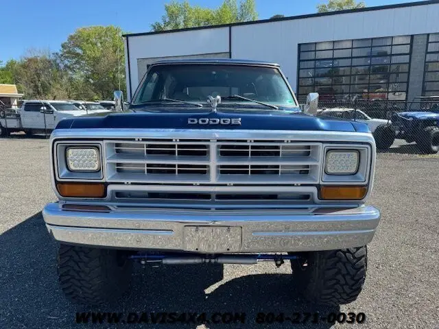 Dodge Ram Charger Lifted 4x4 SUV Project. This LE 150 ram unit has undergone a full body and paint restoration and has an extremely solid and mostly all original interior in excellent shape headliner perfect even has the big era correct style floor mats in the floor. This truck was lifted at Davis off Road several years ago before pulled off the road for restoration has approximately 8 inch suspension lift, upgraded powder coated track bar system and crossover steering as well as painted and powder coated steering components and dual steering stabilizers basically brand new 37 inch Toyota open Country Mud terrain Tires with less than 1000 miles on 14 wide steel Bart Wheels. The truck runs draft starts and operates. The only part that makes it a project currently as it needs some final trim installation and a few other miscellaneous items installed. It has gotten pushed to the side due to the busyness of other projects currently. Call for any