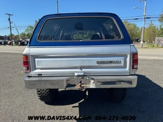 Dodge Ram Charger Lifted 4x4 SUV Project. This LE 150 ram unit has undergone a full body and paint restoration and has an extremely solid and mostly all original interior in excellent shape headliner perfect even has the big era correct style floor mats in the floor. This truck was lifted at Davis off Road several years ago before pulled off the road for restoration has approximately 8 inch suspension lift, upgraded powder coated track bar system and crossover steering as well as painted and powder coated steering components and dual steering stabilizers basically brand new 37 inch Toyota open Country Mud terrain Tires with less than 1000 miles on 14 wide steel Bart Wheels. The truck runs draft starts and operates. The only part that makes it a project currently as it needs some final trim installation and a few other miscellaneous items installed. It has gotten pushed to the side due to the busyness of other projects currently. Call for any questions or details. These are just about impossible to find in this type of solid condition.
