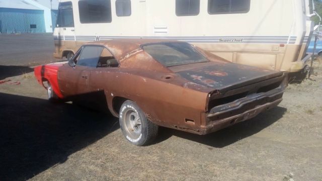 1969 Dodge Charger SE. This is an H code 383 Magnum car, with an automatic transmission on the floor. It is a factory A/C car and has the main A/C box in the trunk. It is a power steering, and power brake car. Also came with power windows. The front clip is in great shape and solid. Frame rails are good. Core support is good. Hood is good. Fenders are PERFECT! All original. New the ones will $800 through AMD(the only grand that will fit) All the metal you need for this AMD sells brand new and it fits great. Has the front buckets and rear bench. Doors are in fantastic. Car has back glass, and quarter glass. Look at the 1969 General Lee on here right now. I don't see a single piece of metal that's gonna not need work. Cluster is in dash and has no cracks. It has dash harness and it's in good shape, may need a little attention but not bad. The passenger Headlight door is good. As far as options go this car has some good ones and has the potential to be a high value car. If you have any questions call 541-817-3254