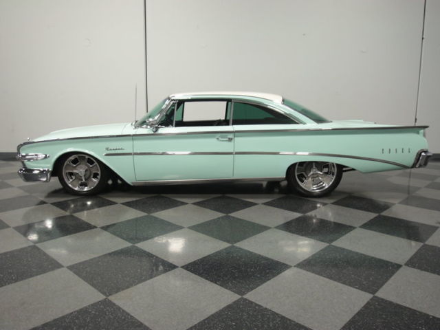 Say the name "Edsel" and a lot of folks might start to laugh. But show them this very slick 1960 Edsel Ranger and perhaps they'll change their tune. Subtly modified and filled with a storming 5.0 powerplant, it's a cool cruiser for the guy who's brave enough to be different.Ford hastily restyled the Edsel for 1960, only to kill it halfway through the model year. That's really a shame, because this car is very much in fashion, both then and now. The long, sleek hardtop styling has a bit of the Ford Galaxie Starliner in it, and the two share quite a bit of DNA, but up close, everyone will be wondering what this one is. The pastel green paint is period perfect and only a car with fins can pull it off, with this Edsel getting extra points for keeping all its trim intact during the freshening. Paint quality is pretty good, with the only demerits being a few of the expected signs of use and age, but there's really no way to avoid that if it's a car you love driving. The trim was all restored, so it shines up brilliantly, and it's a good thing it's in such good shape, because Edsel parts, particularly 1960 Edsel trim parts, are virtually impossible to find. That strongly suggests this car has always been clean and intact, and the overall look really backs it up. And by the way, this car has about the coolest rear end we've ever seen, have a look!The interior is subtle, but with bucket seats, a console, and all the creature comforts, it's a joy to drive. The upholstery looks very much like what you may have gotten in 1960, with patterned cloth and pleated stitching, and they've very cleverly installed the stock wheel on a modern tilt steering column. A Lokar shifter for the 3-speed automatic transmission has a fitted leather boot that integrates neatly into the design, and the original gauges are still in charge of monitoring the engine's vitals. There's also a period-correct under-dash A/C unit that's very much like what the dealer might have installed when it was new. The custom console has a built-in TV and three Rockford-Fosgate speakers in the rear package shelf, so it sounds awesome without changing the interior look. And speaking of the trunk, it's not only massive, but it's neatly finished in black carpets.The engine is a familiar 5.0 borrowed from a low-mileage 1995 Ford Mustang, which was re-sealed before being installed in the Ranger. A few polished aluminum parts, a custom serpentine belt drive system, and neat wiring make it look at home in the Edsel's engine bay, and if you look around, you'll see a lot of other upgrades as well, ranging from power steering to 4-wheel disc brakes. Beautiful headers tuck in close to the block and Flowmaster mufflers give it that famous 5.0 sound that everyone loves so much. There's also a custom front suspension with tubular A-arms and power steering, while the rear appears to be the original 9-inch. Clean floors, a lowered stance, and cool 18- and 20-inch Billet Specialties wheels on 225/40/18 front and 295/40/20 rear tires make this Edsel really stand out.With a reported $120,000 wrapped up in the build, this rare Edsel is a definite stand-out at the next show. And it drives even better than it looks! Call now!