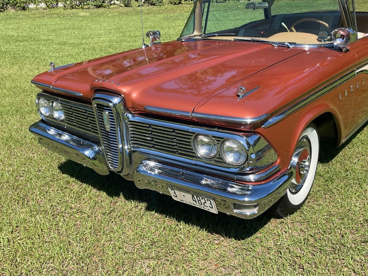 This rare and beautiful '59 Edsel was purchased in Richmond, VA at Meyer Edsel (building still standing today). The car has always been garaged and cared for since. A bit later in the car’s life, it was owned by a wonderful gentleman in the Edsel Club who enjoyed driving it to car shows where the car won many trophies/awards. That gentleman passed on about 8 years ago. We acquired the car from his son, who wasn't driving it as often to car shows as he would like, and therefore made the decision it was time to re-home it to a good Edsel home.