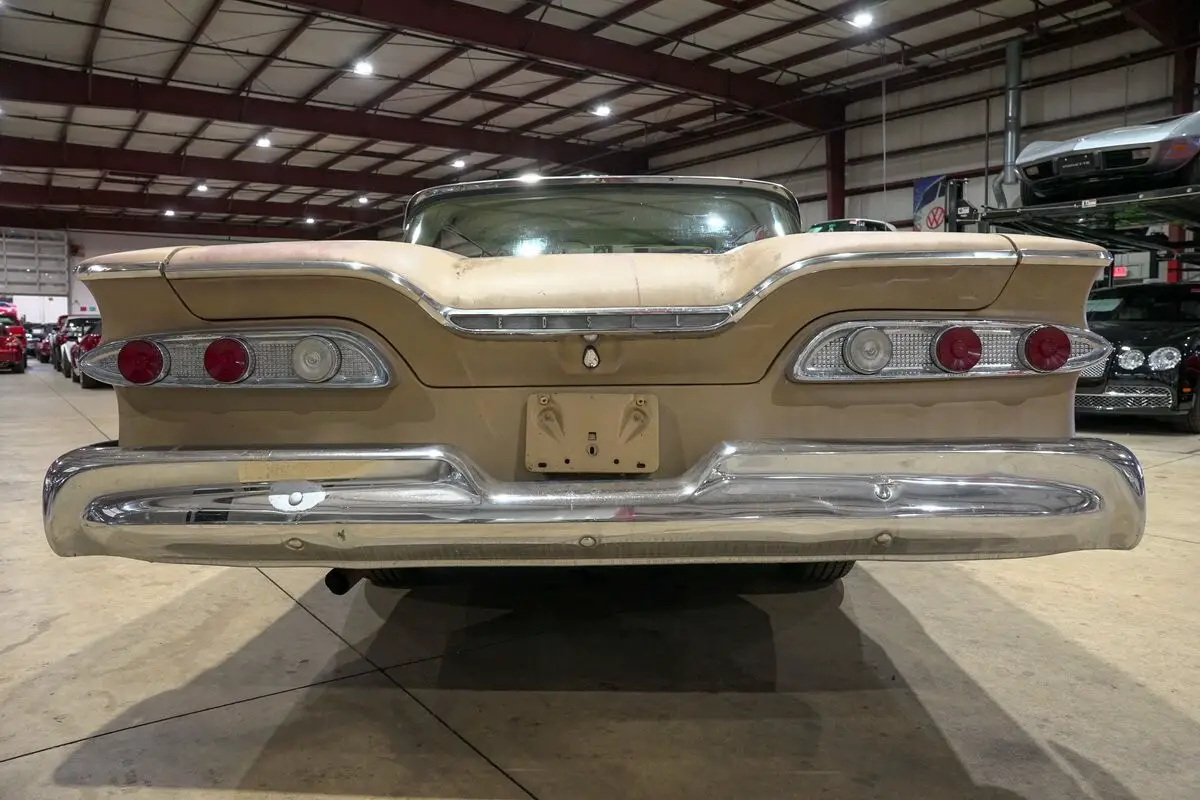 GR Auto Gallery is excited to present this 1959 Edsel Ranger for consideration. Finished in an elegant gold exterior with a contrasting white roof and side trim, this Ranger captures the bold personality of the late 1950s in unmistakable style. The sweeping lines, signature Edsel grille, and tasteful two-tone paint highlight the design flair of an era that celebrated individuality and optimism. The body remains in remarkable condition, wearing what is believed to be its original paint, an increasingly rare find that speaks volumes about the car's preservation and history.