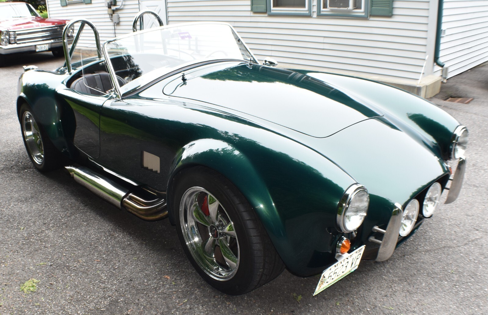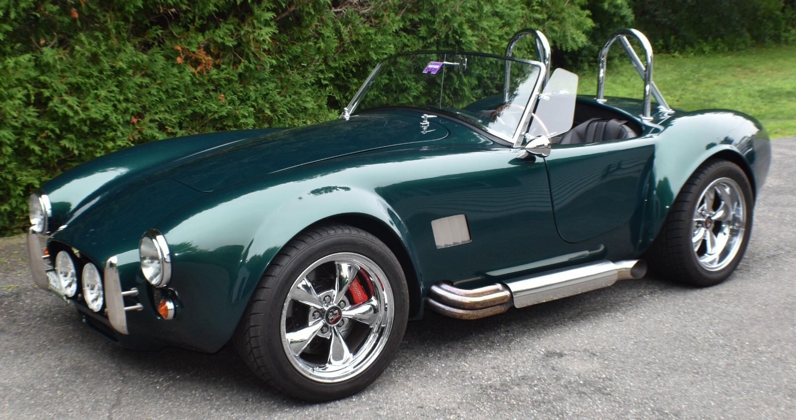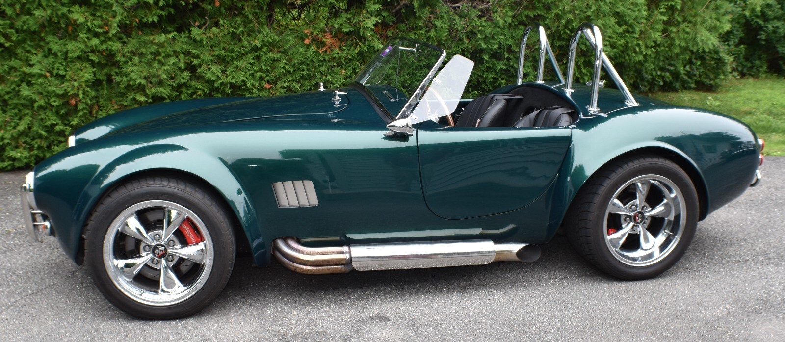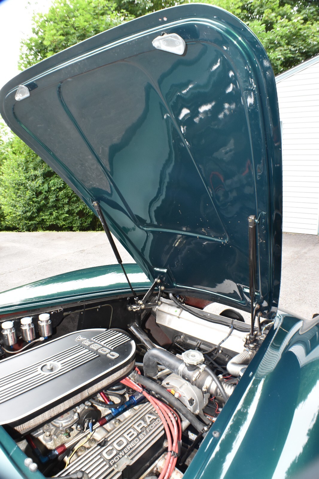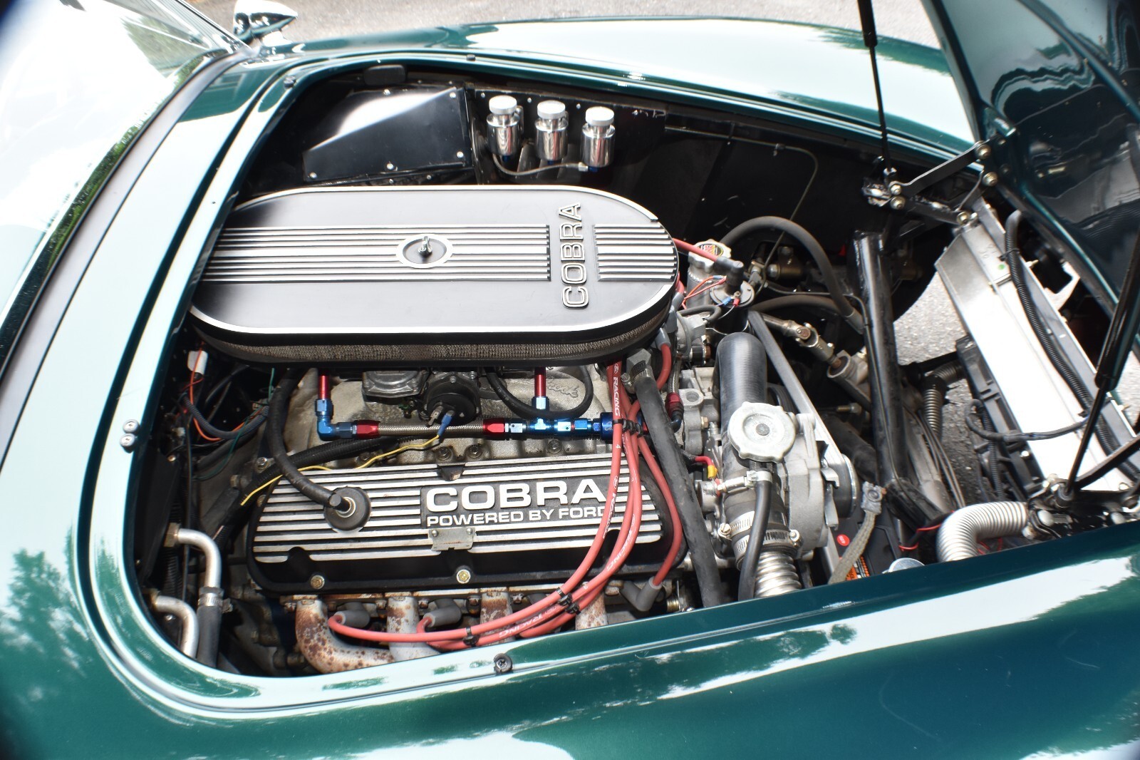 Factory Five Mark IV 1965 Cobra Replica powered by a 363 cu. in. Windsor stroker motor using an HP Dart block, backed by a Tremec 5-speed transmission and 8.8 Ford differential with 3.73:1 gears. Specifications are listed below.
