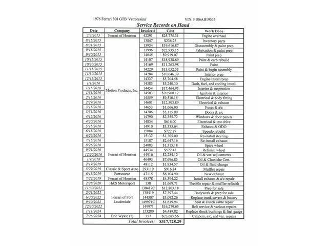 Vehicle Original VIN :866-725-3479011976 FERRARI 308 GTB VETRORESINA (FIBERGLASS) RARE 1 OF 100 IMPORTED TO THE UNITED STATES..FULL RESTORATION BY MARQUE MOTION PRODUCTS $320,000.00 MUSEUM QAULITY CONDITION!!! ** FULL DOCUMENTED 76 PAGES OF RECIEPTS **FERRARI RED BOOK CERTIFIED ***copy and paste YouTube link to see awesome HD video EHgjTQXFZj8