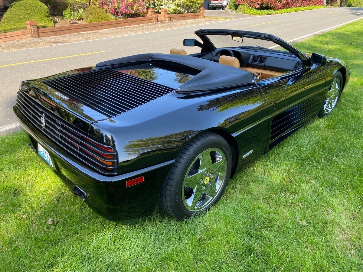 1994 Ferrari 348 Spider. Gorgeous factory original black paint with original Tan leather interior and black canvas folding convertible top. Factory snap on boot cover and storage bag are included. This Ferrari drives great and it SOUNDS just amazing with it's high performance stainless steel Capristo brand exhaust system($4,000). OEM exhaust system is also included w/car.This is an honest mileage Ferrari (less than 2,200 miles per year). There are LOTS of service records from 1999 until present. You can either buy ultra low mileage Ferrari at a much higher price and then expect to spend a lot on service that will be needed in the future, or buy a higher mileage car that has been serviced and updated over all the years!This is the sixth Ferrari that I have owned I bought this car in September 2024, but I have since injured my right shoulder and it's very difficult for me to drive a manual transmission car, so it's time to sell.ALL service records from 1999 onward in a large binder. Two factory keys, the owner's manual and the factory tool kit it's original leather carrying case.The last major engine out timing belt service was done in 2023. Before that, another engine out major service was done in 2016 with a Hill Engineering upgraded bearing and brand new timing belt outer plastic covers ($500), spark plugs, seals, etc. There are also lots of receipts for other major services done between 1999- 2016.