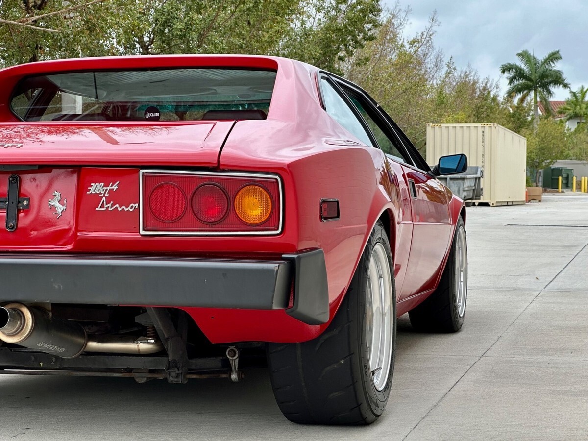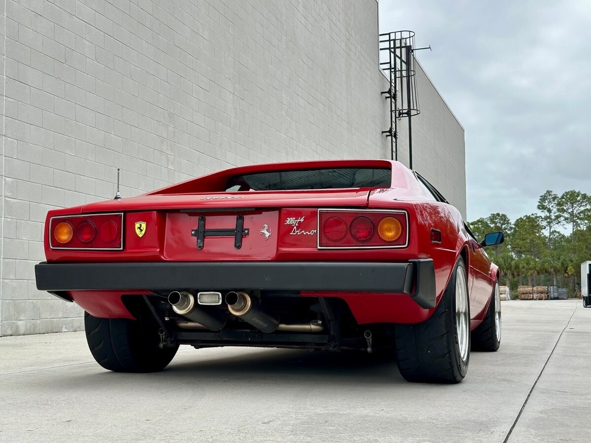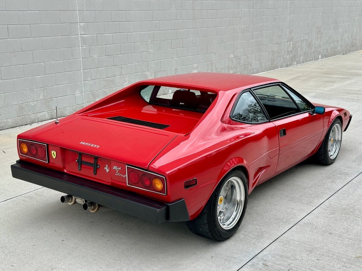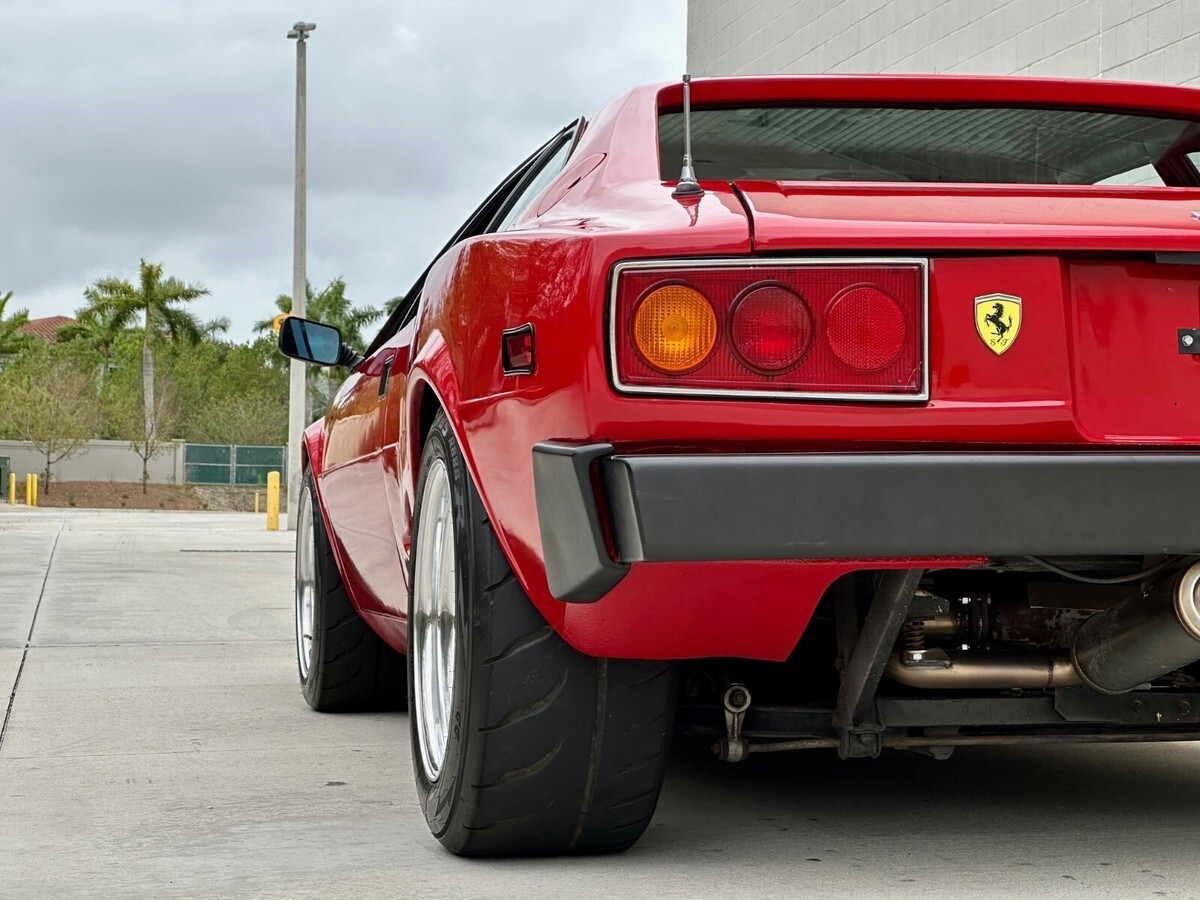 The 308 GT4 Dino had a big reputation to live up to given the fact that its younger brother, the 246 Dino, was such a success. Most would agree that its Bertone design was a bit controversial due to its wedge shaped look but with the widebody and aggressive stance on this car, it is the perfect example of what the car should have looked like from the factory. The car rolls on rare Compomotive 3-piece forged F40 wheels wrapped in Toyo Proxes R888 tires. The car presents very well and the paint shines nicely but it definitely has its fair share of patina throughout. For those looking for a show car, this is not it. This Dino is a driver with character and heck of a personality. The trend continues on the interior, which presents nicely overall with the exception of some aging, most noticeably on the dash. The car has been fitted with vintage Recaro bucket seats but the original seats are included with the sale.Buyer will receive books, manuals, service records and some extra parts.
