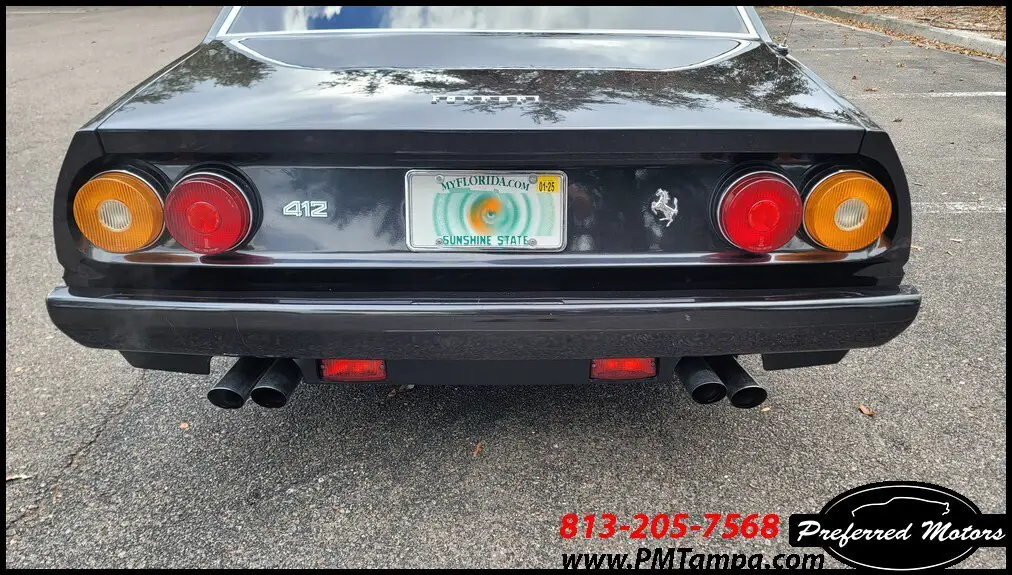PLEASE READ THE ENTIRE AD BEFORE BIDDING=======================================================This is a 2-owner car, originally imported to Texas when new, then to the current owner in Florida in 2000. This is a rust free car that has been well taken care of. We are selling this vehicle for the estate of the second owner as he has unfortunately passed away. While the car has been well maintained and runs and drives well, we have been unable to locate the service records.The car starts, runs, shifts, and drives excellent. The AC system is complete, the blower motor works, but it is not blowing very cold at the moment. The gauges and clock work properly, the car runs smooth and the temperature stays normal while driving or standing.The interior is in very nice condition. The dashboard leather is in good shape, as are the seats. The rear seats don't appear to have ever been sat in.Check out the pictures and contact us if you have any questions. Inspections are welcome at vehicles current location, by appointment.=================================================================================================1987 Ferrari 412Pininferina Designed BodyV12 Front Engine Rear Drive17K original milesNo rustAutomatic TransmissionBeautiful leather interiorFactory wheels also included in saleRuns and Drives Great!===============================================Car is sold "As-Is, Where-Is". Dealer fee is $399.Buyer responsible for shipping logistics and cost. We will be happy to facilitate the pickup, of course.Florida buyers: We collect appropriate sales tax and we will handle title transfer for you.US Outside of Florida: We do not collect sales tax if vehicle is shipped outside of FloridaExport: If the car is being exported, we do not collect sales tax. We will need proof of exportCar currently has a Florida title with miles exempt due to agePayment to be made by wire transfer or cashiers check - (Vehicle will not be released until bank clears funds)