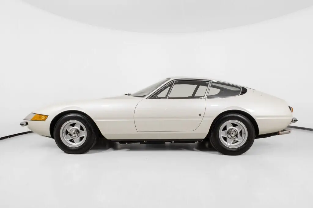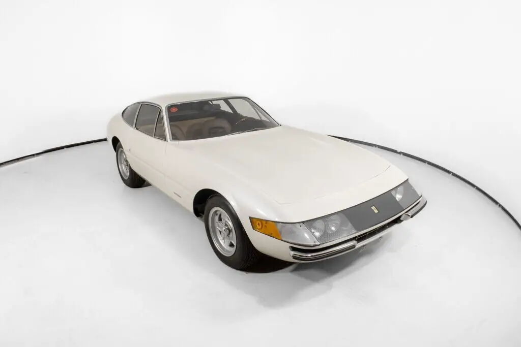 Ferrari Beverly Hills is proud to present this historically significant 1969 Ferrari 365 GTB/4 “Daytona”, chassis #12641 — the only known example originally painted Bianco Luna, a rare metallic white created to commemorate the 1969 Apollo 11 moon landing. This early-production, first-generation Plexiglass-headlight European-specification Daytona was restored by renowned Ferrari specialists Bacchelli & Villa in Modena and awarded Platinum and Best in Class at the 2022 Cavallino Classic Concorso d’Eleganza. Ferrari Classiche Certified with matching numbers and original colors, this Daytona is supported by a documented ownership history, its original books and toolkit, and comprehensive restoration documentation.Chassis #12641 is believed to be the 31st Daytona produced, completed in June 1969 and delivered new to Ferrari’s official representative in Caracas, Venezuela, Carlos Kauffmann. Its factory-original color scheme of Bianco Luna over Pelle Beige VM 102 is fully documented in its Ferrari Classiche Red Book, which also confirms the car retains its original engine, gearbox, and differential. In 2021, Bacchelli & Villa undertook a full concours-level restoration, rebuilding all major mechanical systems and refinishing the body in its exact factory colorway. The car was judged under IAC/PFA standards and achieved Platinum Award and Best Daytona Restoration honors at Cavallino Classic Modena 2022. The odometer currently reads 178 miles, reflecting limited use since the completion of the restoration, while the true mileage prior to restoration is unknown.This is a true European-specification Daytona, delivered new with plexiglass headlight covers — a feature unique to early production models and never offered in the U.S. The car retains its original steel body panels with factory aluminum doors and hoods, and comes complete with its original books and toolkit. The Ferrari Classiche Red Book, issued on January 19, 2022, accompanies the car and confirms the matching-numbers mechanical components and original colors.With its one-off paint specification, fully documented Ferrari Classiche certification, and award-winning restoration by Bacchelli & Villa, this early Plexiglass Daytona stands as one of the most collectible examples in existence. It presents a rare opportunity to acquire a Daytona that combines historical significance, restoration pedigree, and exceptional originality.Now available for acquisition. Please contact our sales team at Ferrari Beverly Hills for more information or to schedule an appointment for viewing.