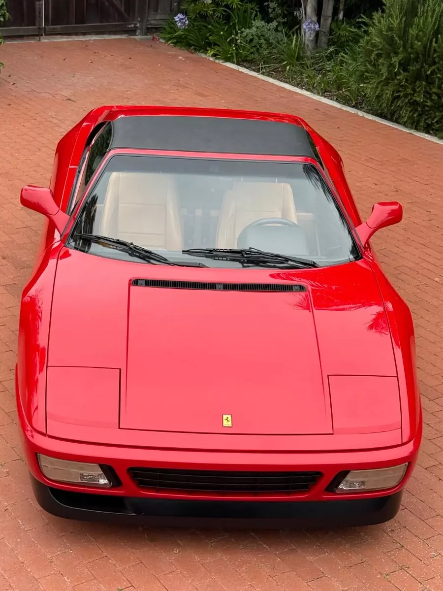 Finest available, up-to-date Ferrari Dealer serviced 1990 Ferrari 348ts with clean CARFAX and 17,350 original miles.Includes Original:1. Key with folding head (1)2. Books3. Tools4. Service RecordsGaraged in La Jolla, CA 92037iPhone 858-454-9898Paint Meter Readings (mil):Front Trunk: 5Engine Cover: 5Left Front Fender: 4.5Left Door: 5Left Rear Fender: 5Right Front Fender: 5Right Door: 5.5Right Rear Fender: 4.5Abbreviations for Below:PDR: Paintless Dent RemovalNOS: New Old StockNLA: No Longer AvailableECU: Electronic Control UnitDOA: Dead On ArrivalLH: Left Hand Driver SideRH: Right Hand Passenger SideR&R: Remove and ReinstallAdditional Recent Service:04/29/25 - 06/02/251. PDR:a. Highly seasoned PDR expert removed all dents and creases from all panels and headlight coversb. Using micro paint brush, touched up all panels, headlight covers, louvers, strakes and lower trim using Ferrari factory correct Rosso Corsa red and semi-gloss black paintResult: Absence of dents and scratches2. Power Windows Refurbishment/Renewal/Improvement:a: Power window metal cables and tubes soaked, stripped of old and hardened original grease. Properly reassembled with new assembly greaseb. Replaced old and cracked extension guide tube with new red silicone extension guide tubec: Computer scanned, measured and templated old and brittle original white plastic glides and stops. Computer 3D printed new glides and stops in stronger high-viscosity polymer (superior to original)d. Realigned and reinforced original Bosch window motorse. Added and installed new Genuine Ferrari electric window boosters (2)Result: LH and RH windows now effortlessly and quickly glide up and down (faster than when new)3. Power Central Door Locks Repaired:a. Sourced and installed replacement Genuine Ferrari power door lock ECUb: Installed new Genuine Ferrari LH and RH power door lock actuators (2)Result: Power central door locking system works as originally designed via door key locks and interior center console buttons4. Refurbished/Renewed Shoulder and Lap Seat Belts:a. R&R seat belts. Sent out shoulder and lap belts to specialist, who replaced seat belt material, reinstalled sewn-on tags (on correct side in original locations), replaced springs and force stopsResult: Seat belts now hold tension and fully retract when not in use5. New Genuine Ferrari Glove Box Gas Strut:Result: Glove box stays propped-up when open and closes smoothly6. New Alpine Audio System:a. Removed existing DOA Sony CD radio, old deteriorated Nakamichi speakers (4); and all related non-stock wiringb. Repaired damaged original Ferrari factory antenna wire lead inside center consolec. Installed NOS NLA Alpine CDA-9835 CD-radio with new adapter for Bluetooth and telephone microphoned. Installed new Alpine S2-S50 5.25" coaxial speakers in original Ferrari factory door locations with custom fabricated lightweight aluminum bracket mounts to optimize speaker location for unimpaired crystal-clear audio/sound/tone through original door-card carpete. Sourced and installed replacement Genuine Ferrari LH and RH rear shelf black leather-over-fiberglass end trim pieces (previous stereo install cut/modified original rear shelf end trims to accommodate non-stock location rear speakers)Result: New Alpine audio system in Ferrari factory correct locations; and restoration of black leather rearshelf with Genuine Ferrari trim parts7. Details/etc:a. New Genuine Ferrari RH passenger washer nozzle (existing RH nozzle had broken clip)b. New Genuine Ferrari Brembo bleed nipple rubber caps (4) (originals were either missing or brittle from age)c. New Genuine Ferrari Injection System and Fuel Pump Bosch 30a relays (4) (originals intermittent and replaced due to age)d. New Optima RedTop 34R (CCA 800 CA 1000)Result: Replaced items due to their ageFerrari Dealer Service07/30/24 - 03/20/25Total $53,392.41Job: New Radiators and New Air Conditioning Dryer Bottle with Pressure Switch03/20/25 17,247 miles1. Installed client supplied new brushed aluminum radiators from Superformance UK Limited $1,955.642. Installed client supplied new Air Conditioning Dryer Bottle with Pressure Switch from Red Bay Cars in Belgium $155.28Ferrari Dealer Installation $3,252,84Total $5,363.76Job: Cat Service and Rebuild Steering Rack01/03/25 17,238 miles1. New Cat Temp Probe and New Cat Temp ECU's (2) $3,811.012. New client supplied Oxygen Sensors (labor) $1,0003. Refurbish/Rebuild Steering Rack $4,987.96Shop Supplies $95Sales Tax $281Total $10,174.97Job: Major Service (348ts had not been driven for years)07/30/24 17,238 miles1. Transport to Ferrari Dealer $2,2202. New Battery $8263. Drain fuel tank, flush fuel lines, test fuel pumps, clean injectors, new fuel filters, new fuel, new fuel treatment $1,875.994. New Michelin Tires $1,3065. Four Wheel Alignment $349.956. New Wiper Blades $271.507. New Timing Belt Service with Annual Service, Resealed both Valve Covers and Cam Seals $10,699.398. New Cam Sensor $7559. New Crank Seals (2) $67510. New Oil Filter Housing Gasket, Flattened Sealing Surface of Oil Filter Housing $517.5111. New Spark Plugs and New Spark Plug Wiring $2,131.6112. New Coolant Hoses (unbolt subframe, lower engine and replace coolant hoses from engine to crossover pipes on firewall) $5,554.2213. New Bank 2 Exhaust Temp Sensor (Thermocouple) $1,067.3114. New Secondary Air Hoses (4) $742.7315. New Ground Cable $25016. New Battery Hold Down Bracket $110.1317. New Engine Mounts $6,468.6418. New Trunk and Engine Lid Shocks (4) $372.7619. Air Conditioning R134A Conversion $0.00 (included in annual service)20. Insulate Connectors of Rear Cooling Fans $0.00 (included in timing belt service)21. New Trunk Seal $324.81Shop Supplies $95Sales Tax $1,240.13Total $37,853.68Easily the finest thoroughly up-to-date serviced Ferrari 348 available.ALL SALES FINAL.