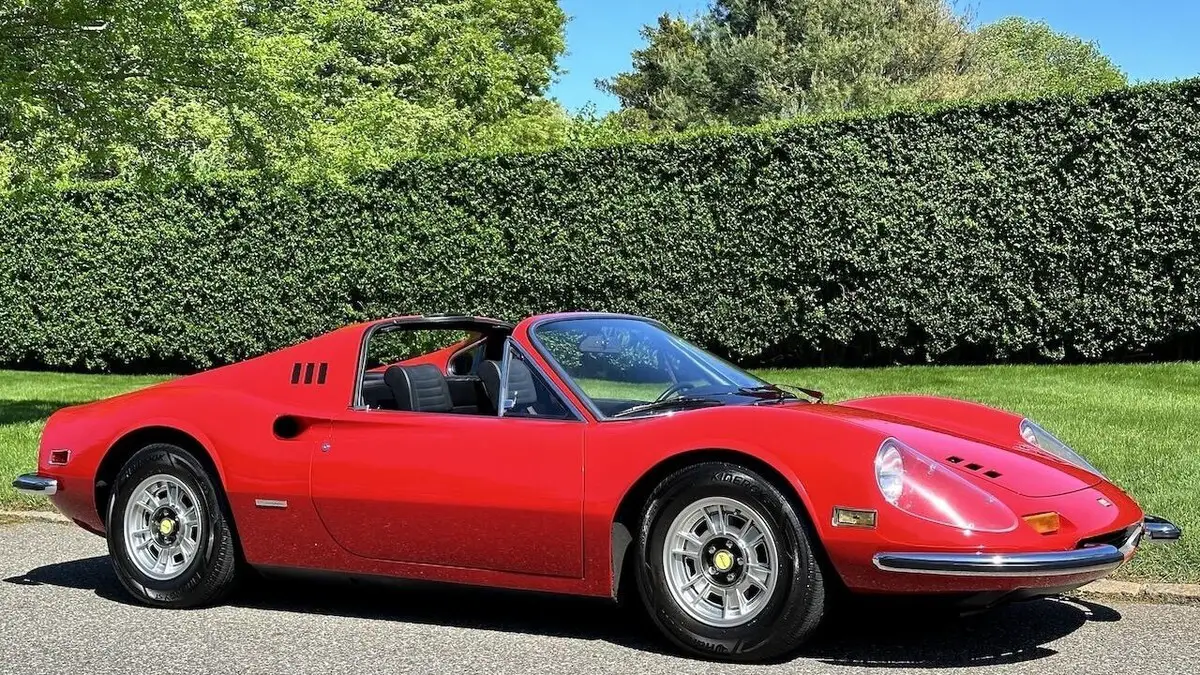1974 Ferrari Dino 246 GTS. This example is finished in red over a black leather interior and is in excellent condition. Car comes with original tool kit, owner’s manuals, original Bill Of Sale and service records: