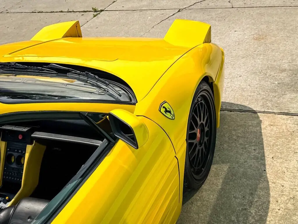 Exterior highlights include pop-up headlights, straked side intakes, and body-colored mirrors and bumpers. The vibrant Giallo Modena finish shows well with a recent full paint correction, matching the aggressive stance provided by the custom BBS wheels.