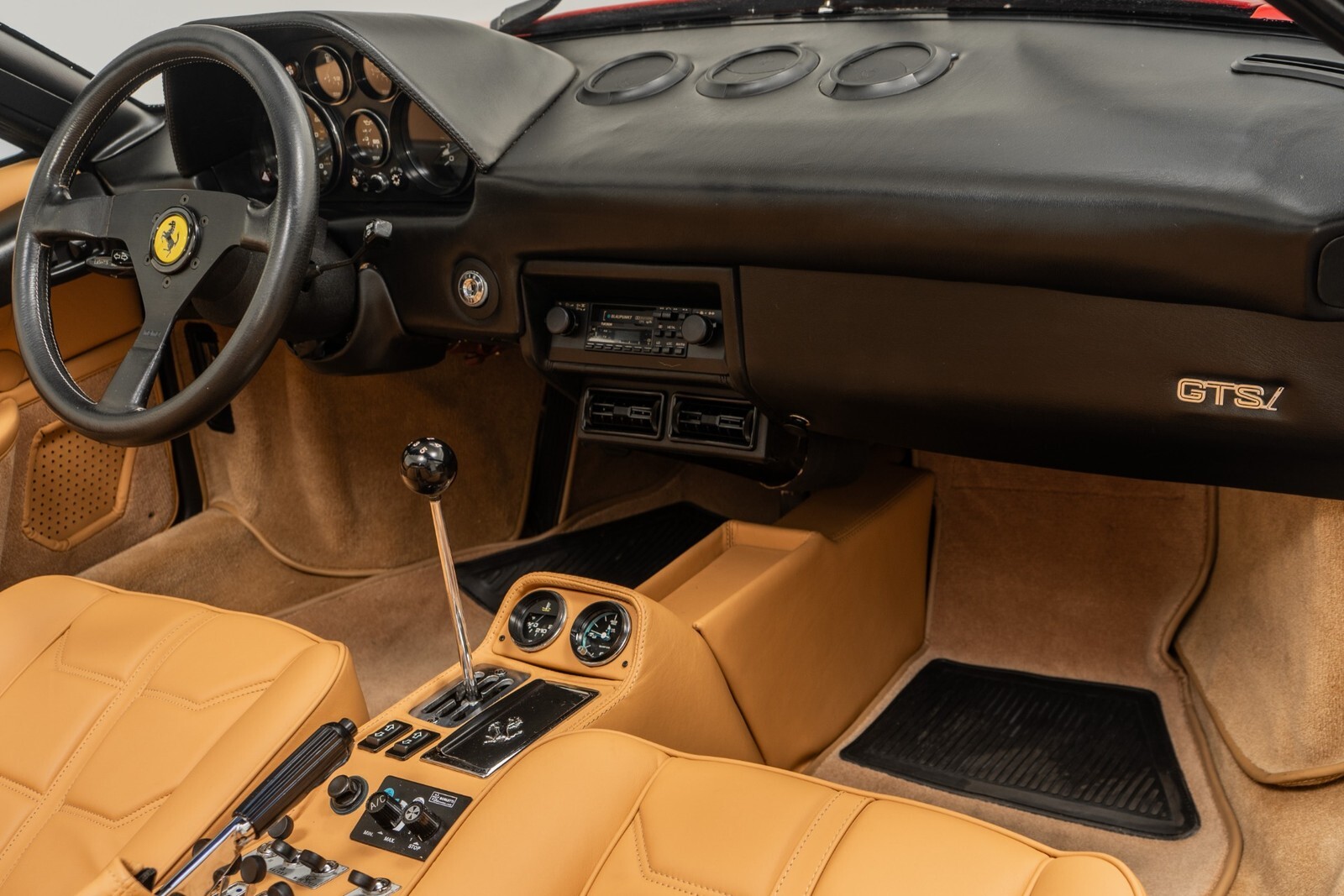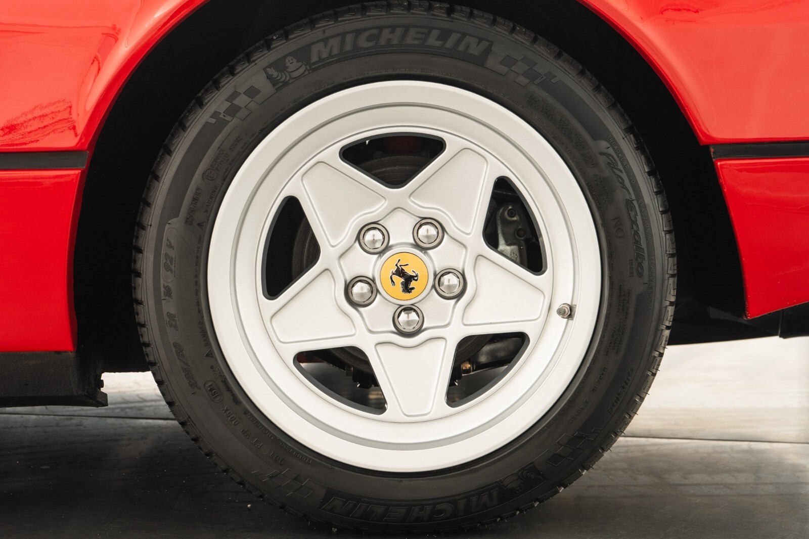 1985 Ferrari 308 GTS Quattrovalvole in Rosso Corsa over Beige leather interior and only 7,609 original miles. This 308 is loaded with: 3.0 liter four valve V8, gated 5 speed manual transmission, period correct Blaupunkt Tucson radio (Ferraris of this period did not come with original radios) and much more. This is a gorgeous, ultra low mile example which had a belt and fluid service as well as new tires done 12/8/2022 as well as a FULL suspension rebuild 8/2017. This is a very well sorted, very good looking 308 with its original tools, books, keys, jack kit and Targa top cover.