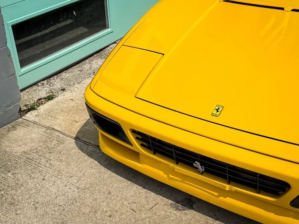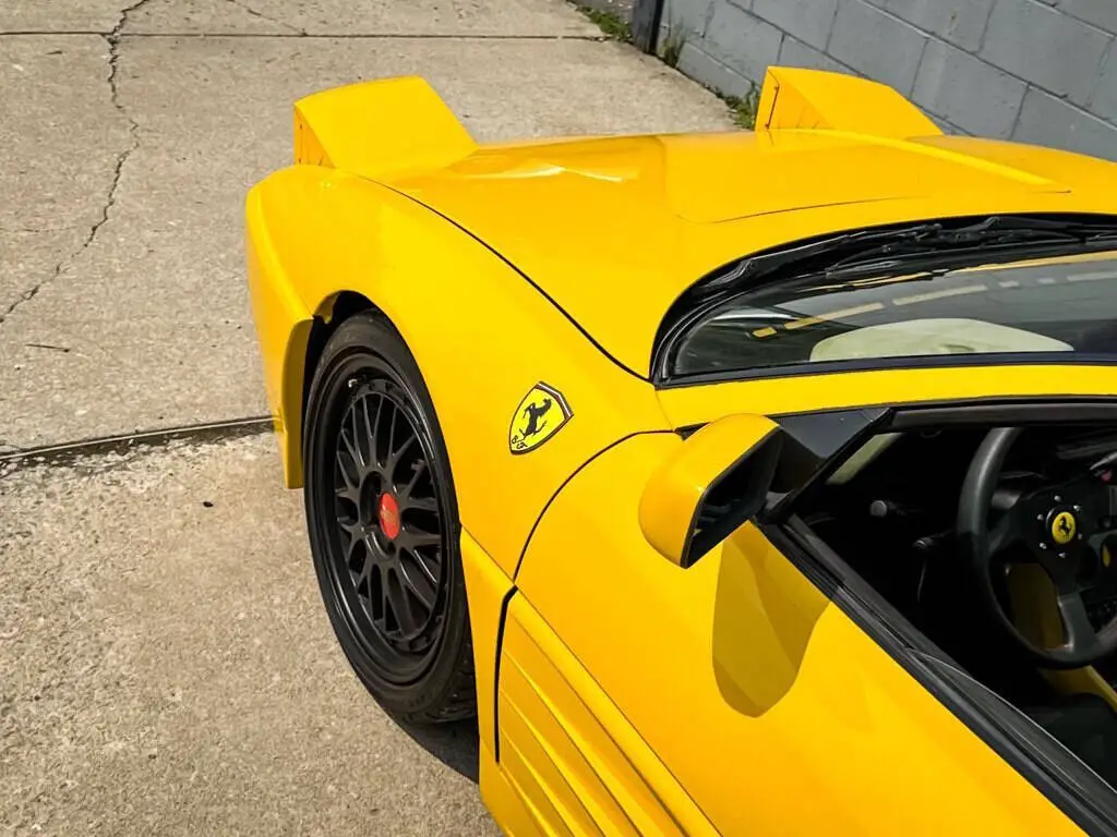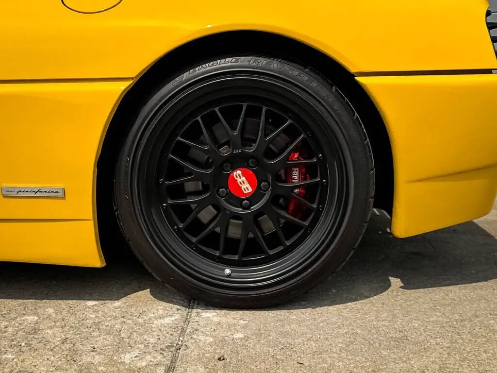 Exterior highlights include pop-up headlights, straked side intakes, and body-colored mirrors and bumpers. The vibrant Giallo Modena finish shows well with a recent full paint correction, matching the aggressive stance provided by the custom BBS wheels.