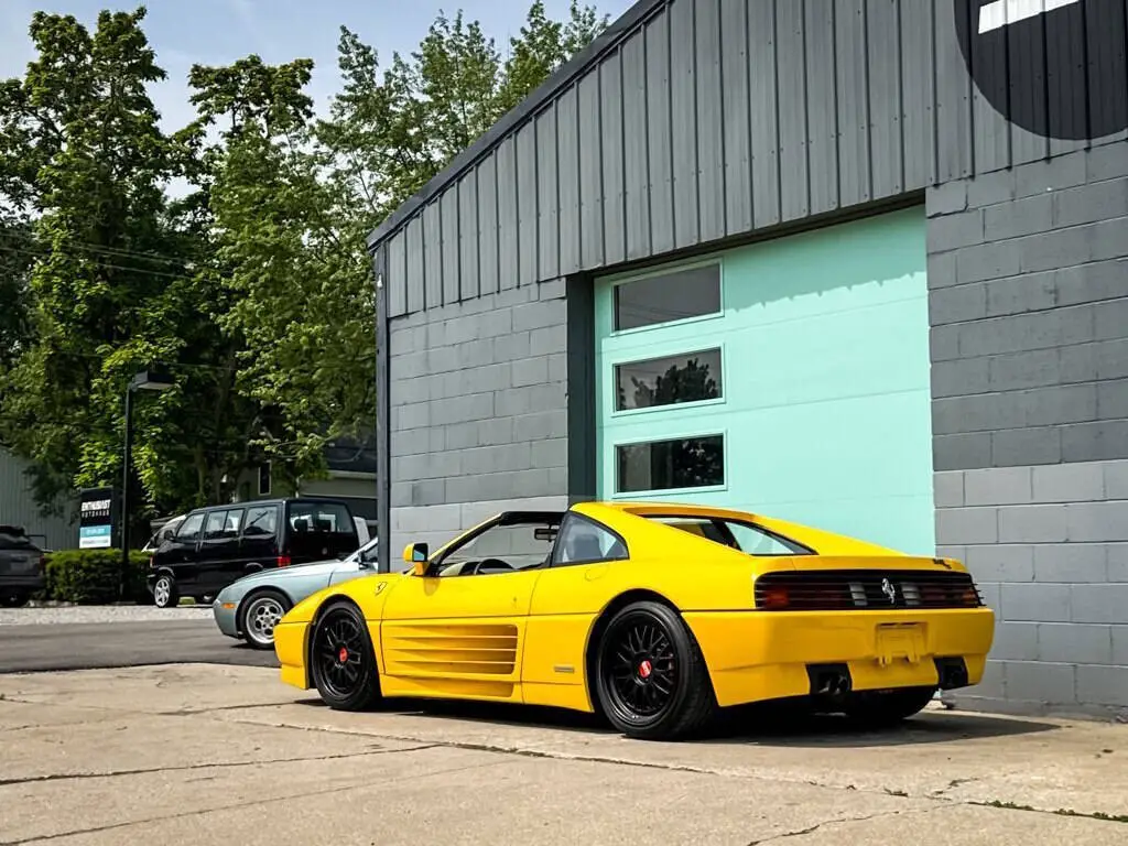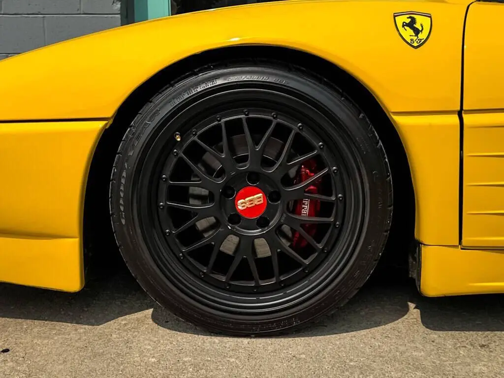 1990 Ferrari 348 TS - 38k miles, clean title, clean CarFax, finished in Giallo Modena over a partially stripped black leather interior, powered by a mid-mounted 3.4-liter V8 paired with a dogleg 5-speed manual transaxle, full engine rebuild completed in 2021 with supporting photos, equipped with a targa-style removable roof panel and rides on custom 18'' BBS wheels finished in gloss black.