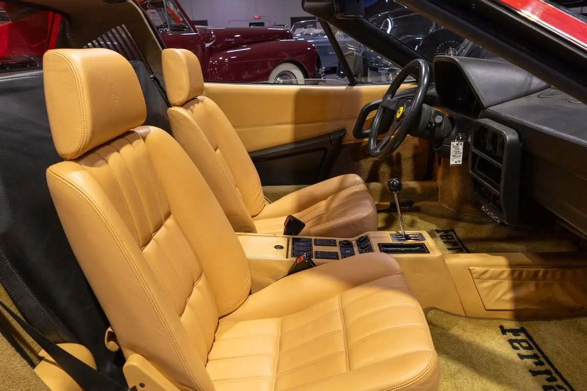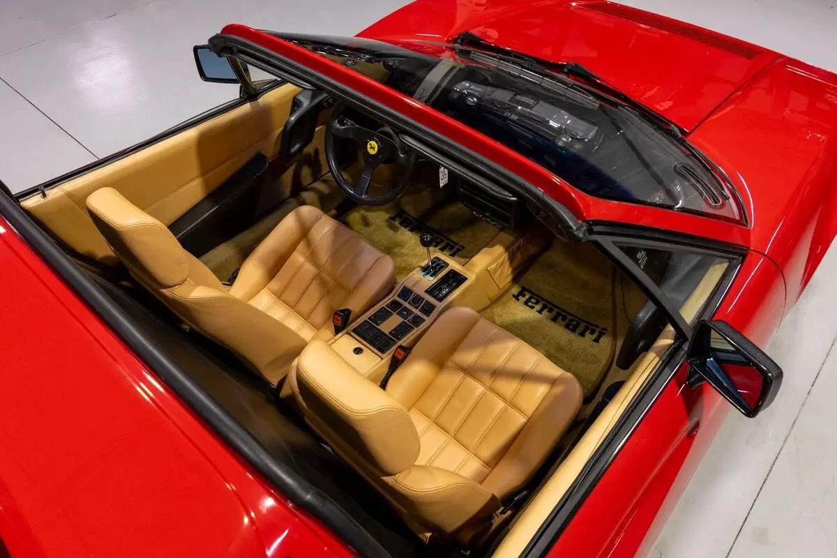 This 1987 Ferrari 328 GTS is a gorgeous, well-preserved Italian exotic with great options, low miles, and a clean CarFax! The 1987 Ferrari 328 represents a defining moment in Ferrari's 1980s era, blending the company's racing heritage with refined Italian design. Introduced at the 1985 Frankfurt Motor Show, the 328 succeeded the popular 308 series and quickly earned acclaim as Ferrari's most well-rounded V8 sports car of its time. With styling by Pininfarina, the 328 featured subtle but effective updates-cleaner lines, integrated bumpers, and a more modern stance-while preserving the unmistakable Ferrari silhouette. Under the rear decklid, the enlarged 3.2-liter V8 delivered improved power and reliability, giving drivers both thrilling performance and everyday usability. The 328 was also one of the last Ferraris developed under the guidance of Enzo Ferrari himself, making it a historically significant link between the brand's classic analog past and the more technologically advanced supercars that would follow. Available in both coupe (GTB) and targa (GTS) form, the 328 offered versatility alongside timeless style, appealing to a new generation of enthusiasts. Today, the Ferrari 328 is celebrated as one of the marque's most iconic and approachable classics-an elegant, driver-focused supercar that perfectly captures Ferrari's spirit in the late 20th century and widely considered as the last enthusiast-oriented Ferrari. This particular low-miles 328 GTS comes to us with a clean Carfax and an average usage of less than 600 miles per year. Powering this mid-engine 328 Ferrari is a transverse-mounted 3.2 Liter dual overhead cam V8 fed by a Bosch K-Jetronic Fuel Injection system that was rated at 260 horsepower when new. The 3.2L V8 is mated to a 5 speed synchromesh manual transmission that is shifted via the iconic gated shifter that makes this 80s-era Ferrari an absolute blast to drive. Exhaust exits the Ferrari-built powerplant via a pair of tailpipes that generate that unmistakable Ferrari sound on startup and while cruising down the road. Power is sent from the Dino Engine to the rear wheels through a limited slip differential that helps ensure that you'll keep the rubber to the pavement when launching this rad exotic. Speaking of rubber, all four 5-spoke alloy wheels are equipped with brand new BFGoodrich G-Force ZR-rated tires that provide a smooth ride and great look. Bringing this Ferrari 328 to a complete stop is almost effortless thanks to 4-wheel power disc brakes that provide plenty of stopping power. Maneuvering this Ferrari is also quite easy thanks to rack and pinion steering that makes it feel as if you can turn this beast on a dime. Dual outside power adjustable mirrors are also a great help when squeezing in or out of tight parking spot at the local car show or ice cream parlor. The removable black Targa top is extremely lightweight and in great shape, making the switch from open cruising to an enclosed setup an easy single-person operation. Additionally, the removable top is easily and neatly stowed behind the seats so that you can have it with you should you get caught in summer shower. The Pininfarina-designed body is finished in Rosso Corsa red paint, perhaps Ferrari's most iconic and eye-catching color of the era. The interior of this 1987 Ferrari 328 GTS is absolutely stunning! The front bucket seats are upholstered in gorgeous tan leather as is virtually every other surface in the cabin. The tan leather door panels, leather-trimmed center console, Momo racing-inspired steering wheel, and Castoro carpeting is all in fantastic shape as well that make this mid-engine Ferrari a truly classy automobile. The interior also comes equipped with several fantastic options! You'll be able to stay cool even on the hottest summer days since this 328 GTS Targa comes equipped with optional factory air conditioning. Moreover, power windows were another add-on option for Ferrari in 1987 and both windows in this car go up and down with the simple push of a button. This '87 Ferrari 328 comes loaded with a bevy of instrumentation including a 180 MPH speedometer, 10,000 RPM tachometer with 8,000 RPM redline, engine temperature gauge, oil pressure and temperature gauges, and a fuel gauge. Whether you're buying your very first classic car or you're adding to your existing stable of Ferraris, this 1987 Ferrari GTS would make an excellent choice. Give Ellingson's a call today at 763-428-7337!