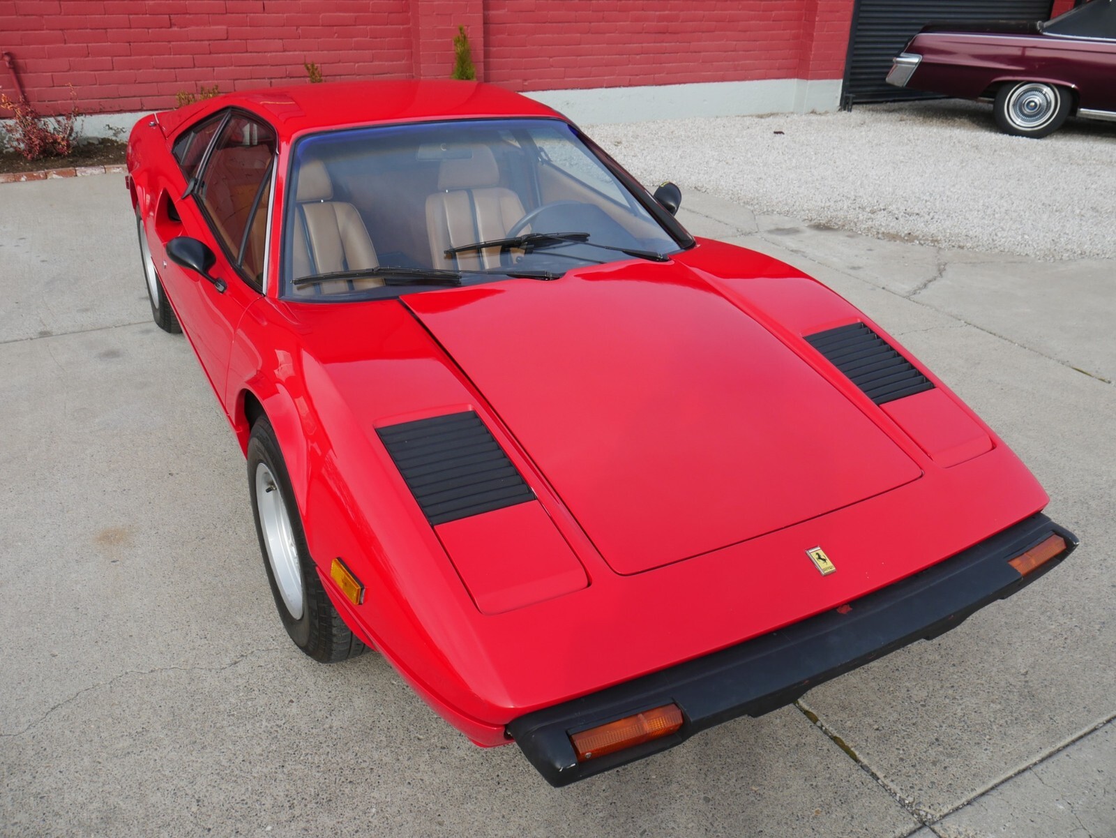 This 1979 Ferrari 308GTB hard top, coupe has a 3 liter 4 cam naturally aspirated engine with a five-speed manual transmission. The 1979 was the last year for carbureted engines. These are known for the particularly nice sound of the four carburetors behind your head. This car runs and drives well. The exterior is red with tan leather interior in fair to good condition.