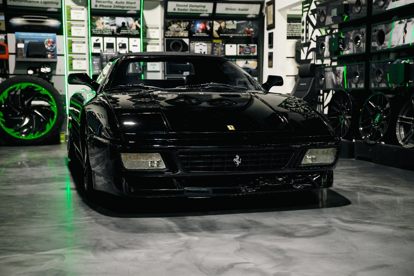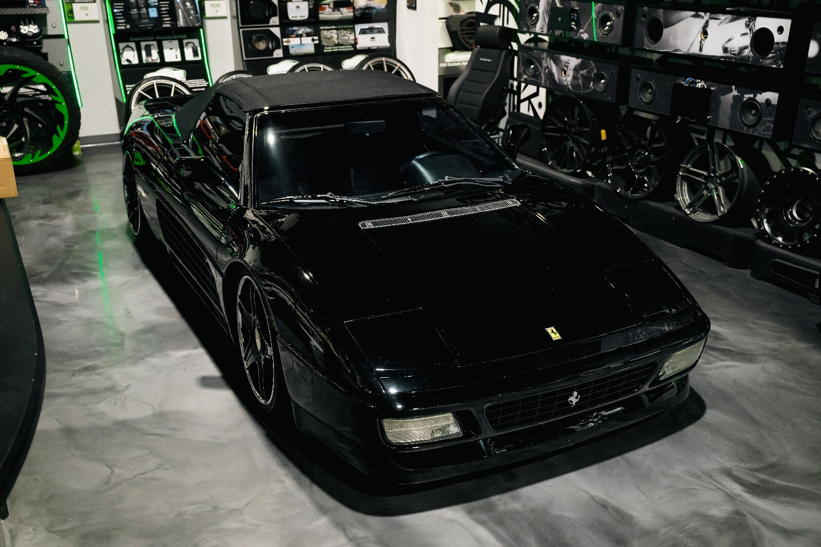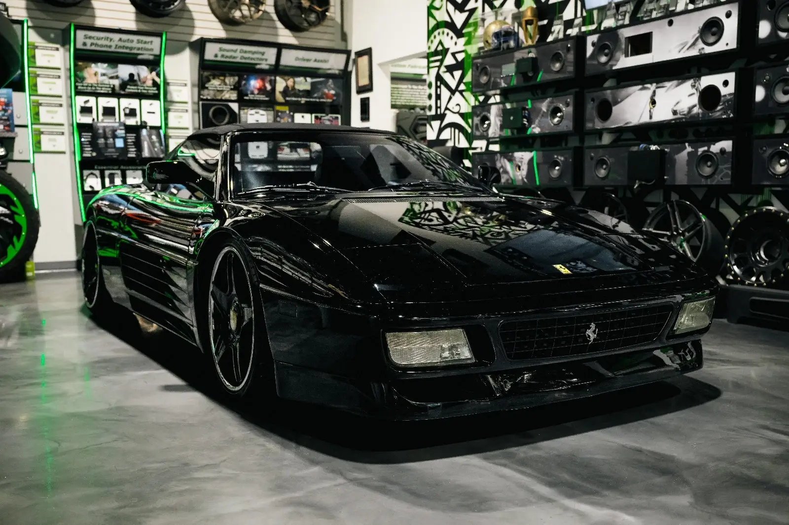1994 Ferrari Spyder 348 finished in black over black interior with a black soft top, also has undergone the full $30k engine-out major service including a new clutch, full front PPF and LED exterior lighting upgrades.