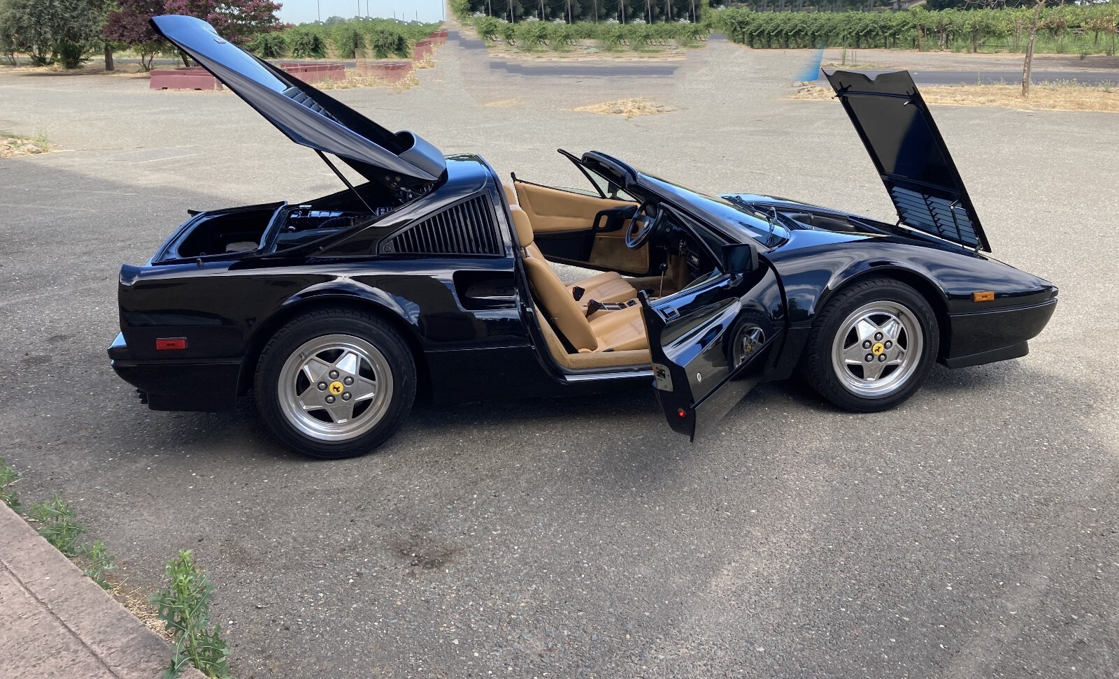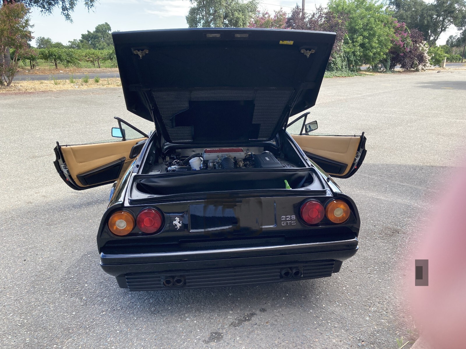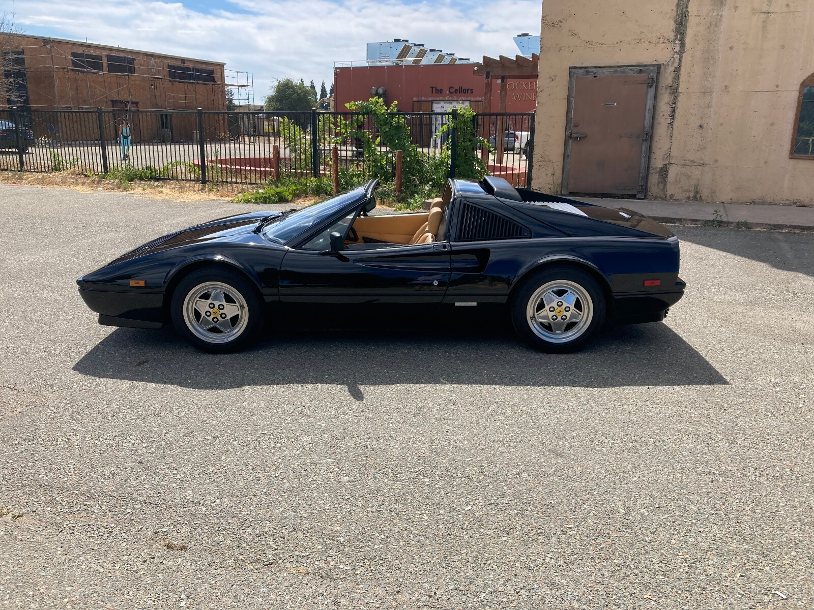 1988-1/2-Built date September 1988 the Ferrari- 328-Gts is one of approximately 6,068 that is a none ABS Model removable-top-Gts examples produced and is finished in Nero over Tan leather upholstery. Over $14k of subsequent work included, a timing belt service in 2023, fluid changes, and replacement Oil 5-50 Red Line and 75-140 Red Line Trans-axle Gear Oil . Power comes from a fuel-injected 3.2-liter V8 paired with a five-speed manual trans-axle, and equipment includes a limited-slip differential, concave 16″ Speed-line wheels,disc brakes, a gated shifter, a Alpine stereo, power windows, and air conditioning. This 328-Gts shows 55k miles and comeswith service records, spare Tire and tools with Jack Kit and Owners Manua, and a car cover, and clean Car fax report, and a clean California title in the owner’s name.The Pininfarina - designed body is finished in Nero and has a removable black roof panel, pop-up headlights, integrated fog lights, side air intakes, dual side mirrors, a power antenna, a black spoiler mounted over the rear window, and quad exhaust tips exiting through the rear valance.The three-spoke leather-wrapped steering wheel frames veglia instrumentation consisting of a 180-mph speedometer, a 10k-rpm tachometer, and gauges for oil pressure and coolant temperature. Readouts for oil temperature and fuel level are mounted above the radio along with an analog clock.The mid-mounted 3.2-liter Type F105 V8 features Bosch k-Jetronic fuel injection and four valves per cylinder. Factory-rated output was 260 horsepower and 214 lb-ft of torque. A major service was performed following the current owner’s purchase, which included replacing the timing belts and tensioner's bearing's with a new water pump and seal's in 2023 as well as the fuel filter oil filter air filter, distributor seals, distributor plate gaskets, and spark plugs with caps and rotors and new spark plug wires set. Additional work in 2025 included, replacing the engine oi, and recharging the air conditioning system. The oil was most recently changed in 4/24/ 2025, at which time the coolant was flushed, and the exhaust check valve was replaced and new catalytic converter was installed .