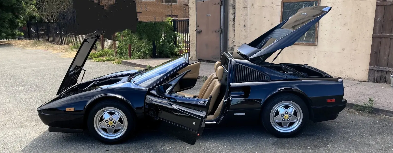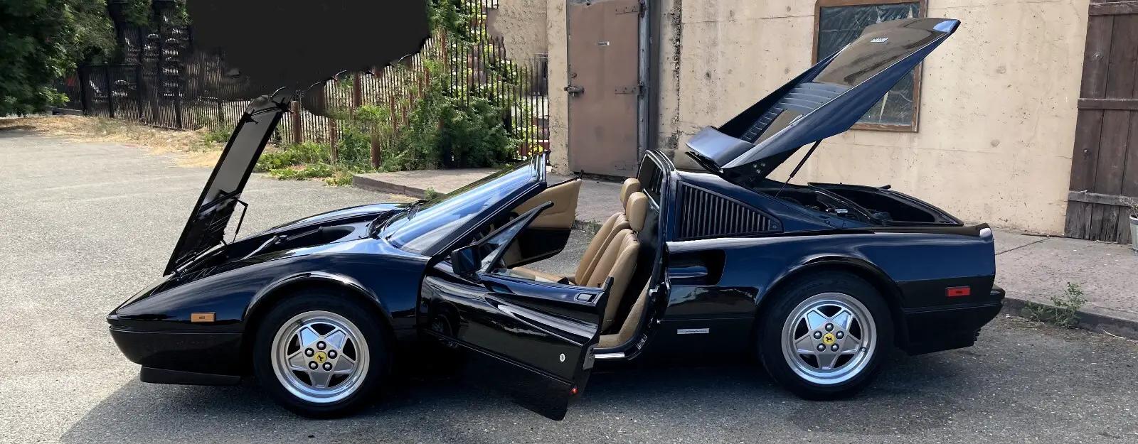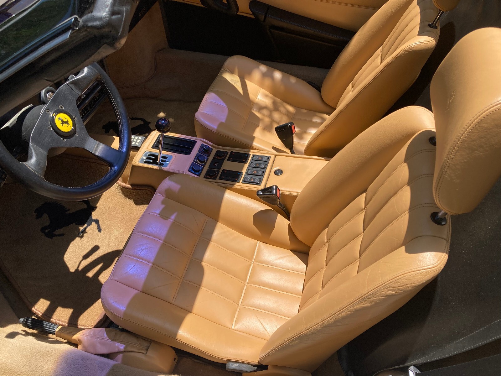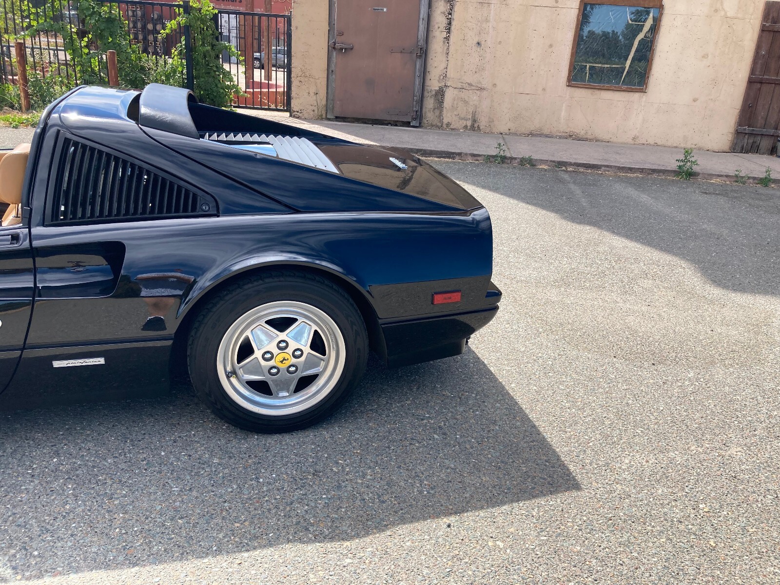 1988-1/2-Built date September 1988 the Ferrari- 328-Gts is one of approximately 6,068 that is a none ABS Model removable-top-Gts examples produced and is finished in Nero over Tan leather upholstery. Over $14k of subsequent work included, a timing belt service in 2023, fluid changes, and replacement Oil 5-50 Red Line and 75-140 Red Line Trans-axle Gear Oil . Power comes from a fuel-injected 3.2-liter V8 paired with a five-speed manual trans-axle, and equipment includes a limited-slip differential, concave 16″ Speed-line wheels,disc brakes, a gated shifter, a Alpine stereo, power windows, and air conditioning. This 328-Gts shows 55k miles and comeswith service records, spare Tire and tools with Jack Kit and Owners Manua, and a car cover, and clean Car fax report, and a clean California title in the owner’s name.The Pininfarina - designed body is finished in Nero and has a removable black roof panel, pop-up headlights, integrated fog lights, side air intakes, dual side mirrors, a power antenna, a black spoiler mounted over the rear window, and quad exhaust tips exiting through the rear valance.The three-spoke leather-wrapped steering wheel frames veglia instrumentation consisting of a 180-mph speedometer, a 10k-rpm tachometer, and gauges for oil pressure and coolant temperature. Readouts for oil temperature and fuel level are mounted above the radio along with an analog clock.The mid-mounted 3.2-liter Type F105 V8 features Bosch k-Jetronic fuel injection and four valves per cylinder. Factory-rated output was 260 horsepower and 214 lb-ft of torque. A major service was performed following the current owner’s purchase, which included replacing the timing belts and tensioner's bearing's with a new water pump and seal's in 2023 as well as the fuel filter oil filter air filter, distributor seals, distributor plate gaskets, and spark plugs with caps and rotors and new spark plug wires set. Additional work in 2025 included, replacing the engine oi, and recharging the air conditioning system. The oil was most recently changed in 4/24/ 2025, at which time the coolant was flushed, and the exhaust check valve was replaced and new catalytic converter was installed .