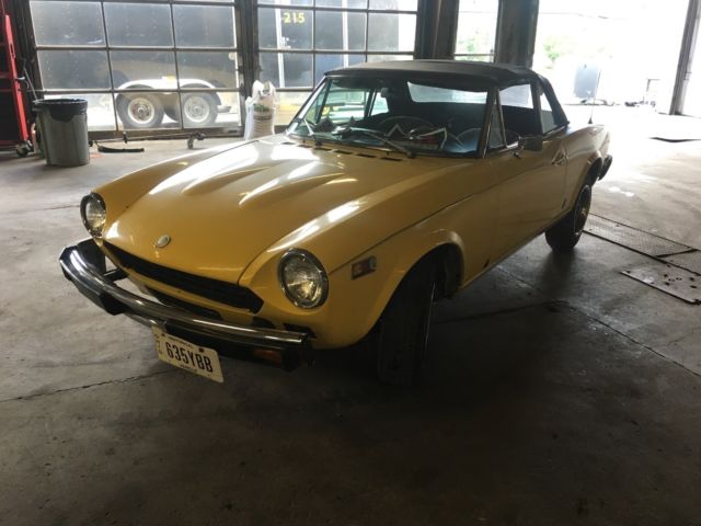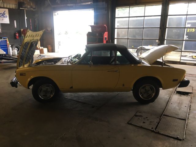Car runs and drives well. Has some rust on body and a hole in passenger floor.Tires are dry rotted. Stops fine but brakes are squealing. Sometimes pops out of 2nd gear. Convertible Top is in good shape, interior pretty good with some cracks. (See pics) It has a dash cover that I never took off. Not my vehicle, just stored it for a friend. I drove it for a few miles on the back roads and on thehighway, it drives nice. Car hesitates off the line, so I figure the carb needs rebuilding. But once it's driving, it runs great.I have the title. I recommend looking at it before you pull the trigger. Pick-up only, cash only. You can put $100 deposit on pay pal and then pay the balance in cash. Please e-mail with questions as I know nothing about Fiats. Thank you for looking.