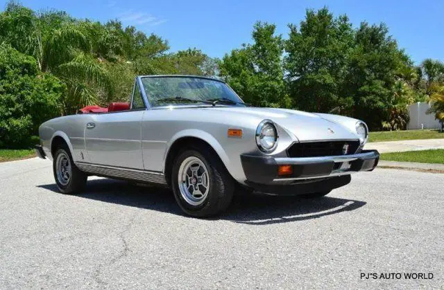 1979 Fiat 124 Spider 2000 Convertible For Sale ( Pininfarina design). 1995cc 4 cylinder engine, 5 speed manual transmission, Ansa sport exhaust, 13 Cromodora wheels with radial tires, silver metallic exterior, black convertible top with red storage boot, drivers mirror, maroon bucket seat interior, rear jump seat, NRG wood steering wheel, power windows, Alpine AM/FM/CD radio. Well preserved and ready for fun in the sun, this classic Fiat drives great!!!