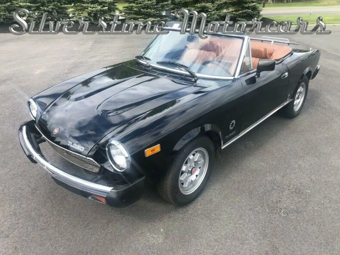 What we have here is an extremely rare 1981 Fiat 124 TURBO Spider Convertible with 79,399 original miles on the odometer. This car is painted in Black, has a complementary Tan vinyl interior and a matching Black canvas convertible top. Overall this car is in very good condition.