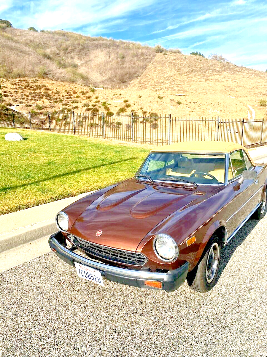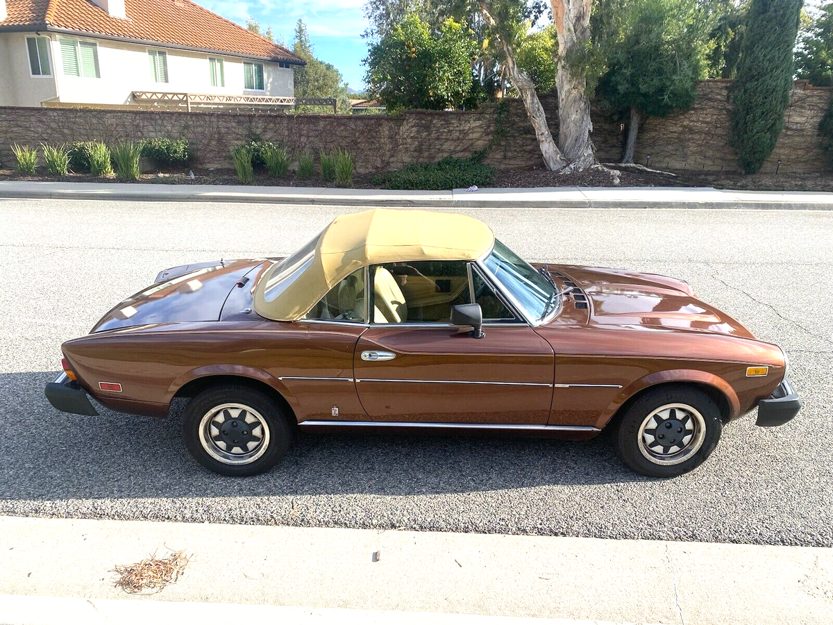 1981 Fiat 2000 (124 Spider) Classic Italian ConvertibleLow miles. Extra clean, Beautiful, California roadster.Designed by the famous Italian designer Pininfarina, this quality built classic Italian beauty, will be your absolute favorite. Simply a blast to drive. "Thumbs up" every time driven! Shows well at every event or cruise. Beautiful Metallic brown finish with few imperfections and dings. Interior, beige, is clean and in excellent condition as well. Seats, carpets, dash, all in good shape. All gauges, lights, function properly. Clean California Title with current registration. Extremely high AutoCheck report. No accidents. Recent smog certification. Great Italian convertible that is a really good investment that seems to appreciate in value, every year.I have tried to describe my Fiat Spider accurately and to the best of my ability. If you have any questions, or would like a inspection, please do so PRIOR TO BIDDING. Because of its age (45 years old) it is being SOLD AS/IS, WITHOUT WARRANTY, either expressed or implied.