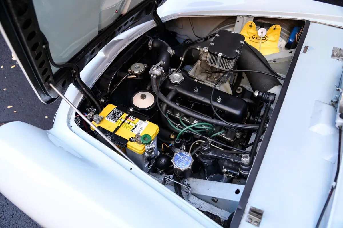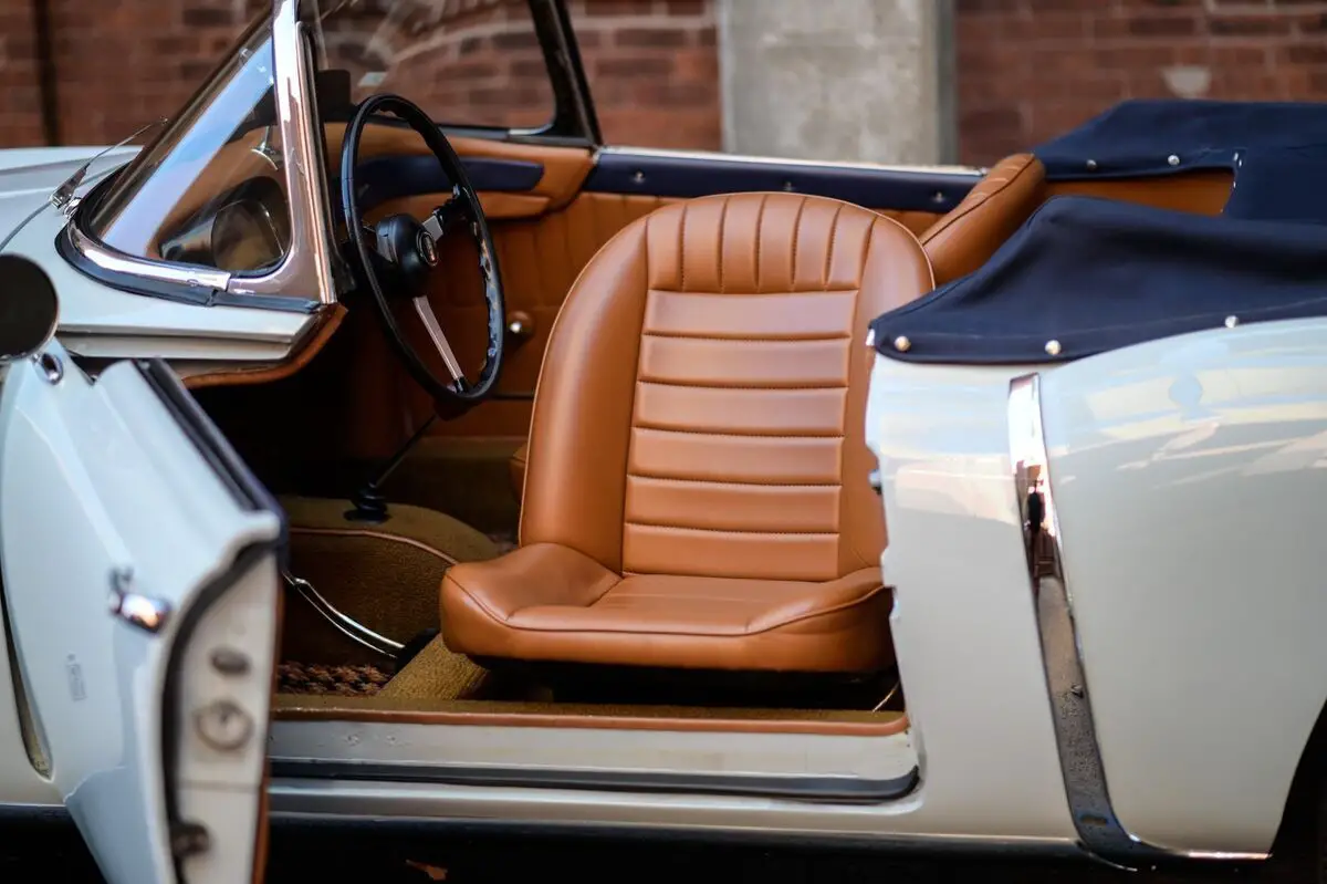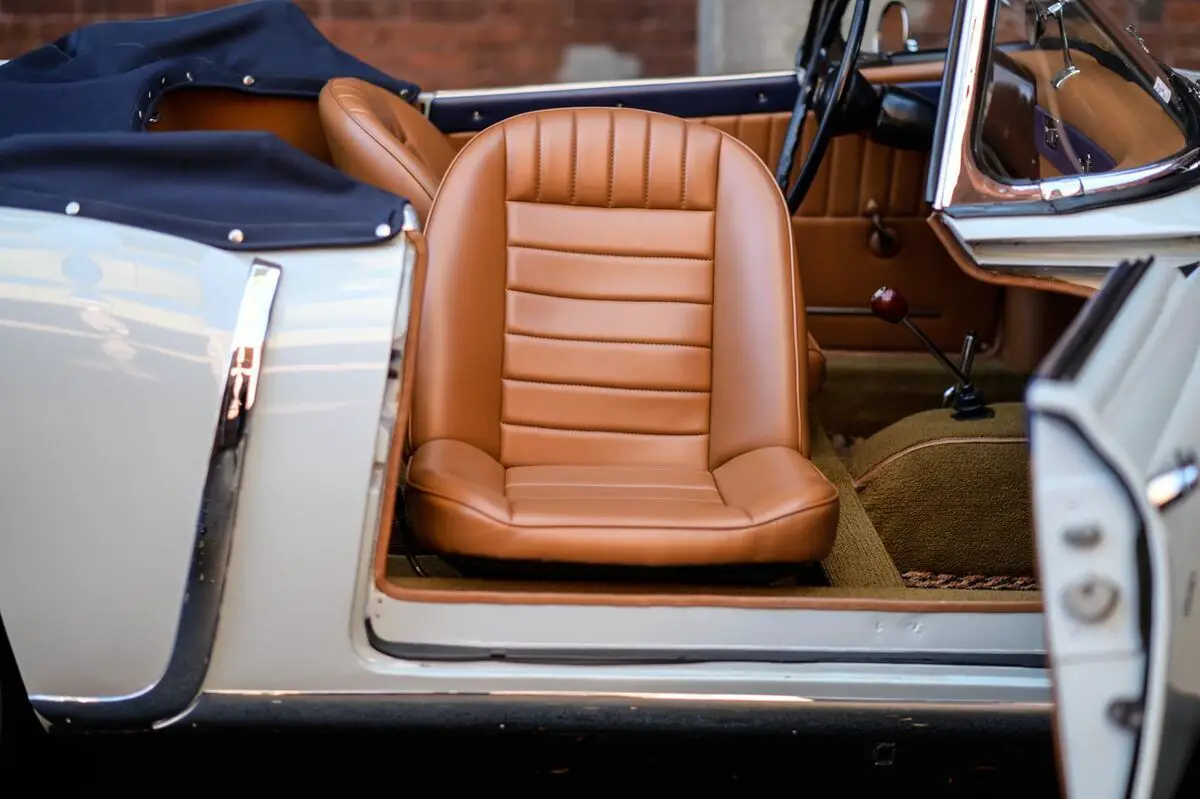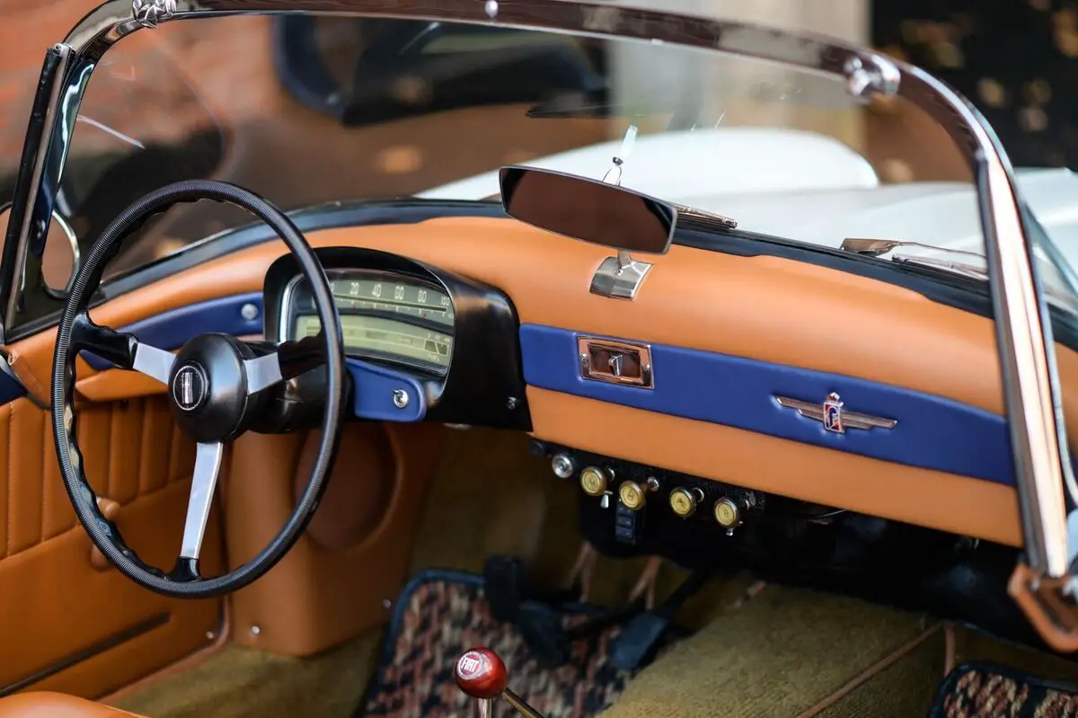 This rare first-production-year Fiat 1200 TV comes in a stunning color of light blue over tan interior. The upholstery was completely redone in 2020 and looks immaculate. The driver and passenger will both get in and out of the car with extreme ease and luxury as the seats swivel for easy entry. The tan leather dash also has navy blue accents that match the fabric of the convertible top perfectly.