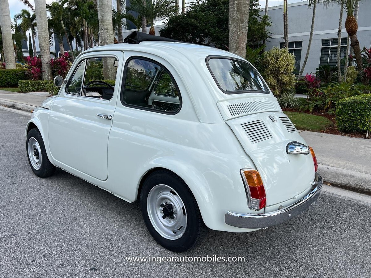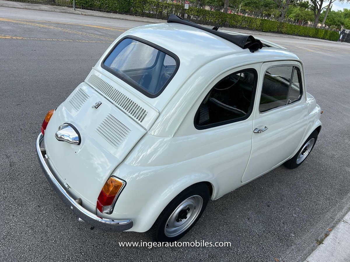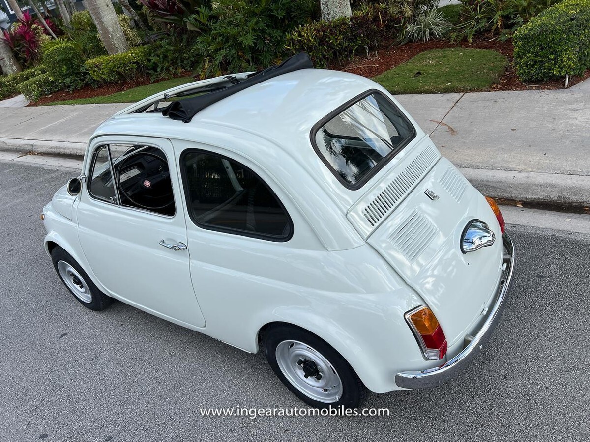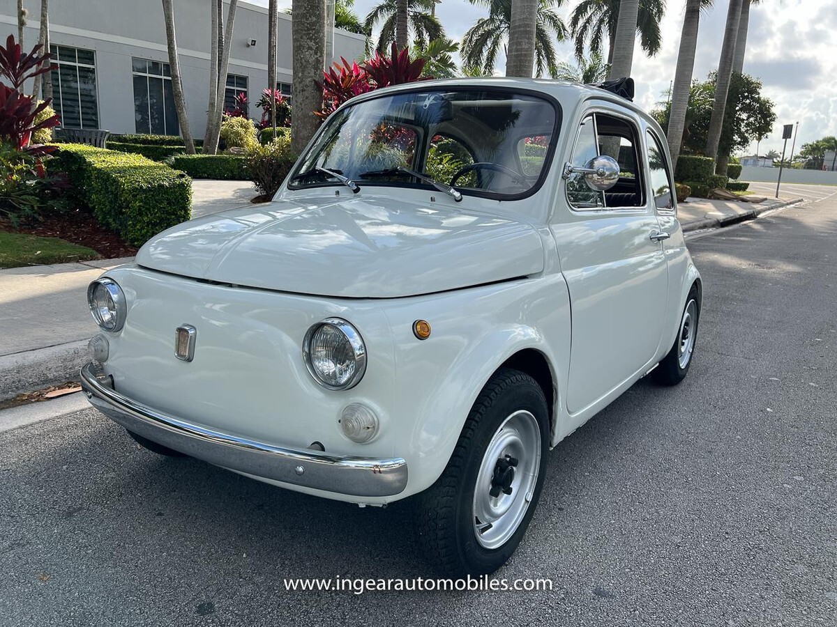 Vehicle Original VIN : 1970FIATCall me 305-542-5662. Up for sale is a really cool 1970 Fiat 500 ragtop in white with black ragtop, and Black interior. Very few in this color combination! Super fun and one of the world’s finest attractive micro cars!Check out the walk-around Video!Take it to the car and coffee & for weekend cruises. Definitely gets a lot of attention & questions. The Fiat is powered by it’s 500cc engine, air cooled. It has a 4 speed manual transmission. Engine Bay is well detailed. Has a nice exhaust that sounds really nice! See the video.The Fiat received a restoration about 5 years ago. All doors, trunk, hood are all aligned like they should from factory. It has always been garage kept and well taken care. All the exterior chromes, trim, latches, bumperettes are good. Underneath the original floor pans are in good shape!The Interior is splendid and contrast well to the exterior paint, Black sport Italian upholstery has been fitted, and tastefully done, and overall condition looks good. Black roll-up top! See all the pictures for full details.I’m located in Miami about 30 minutes away from the airport. Feel free to come see the car in person. Clean FL title. Any inquires email me. $500 non-refundable deposit required within 24hrs of buying. Sold as is where is. Thanks for looking. If you’re looking to finance I would recommend JJ Best. They finance your classic car or hot rod and are very pleasant to work with. Buyer responsible for arranging shipping or pickup of the vehicle. Like any classic cars it has its normal wear and tear. Call me 305-542-5662 with any questions.