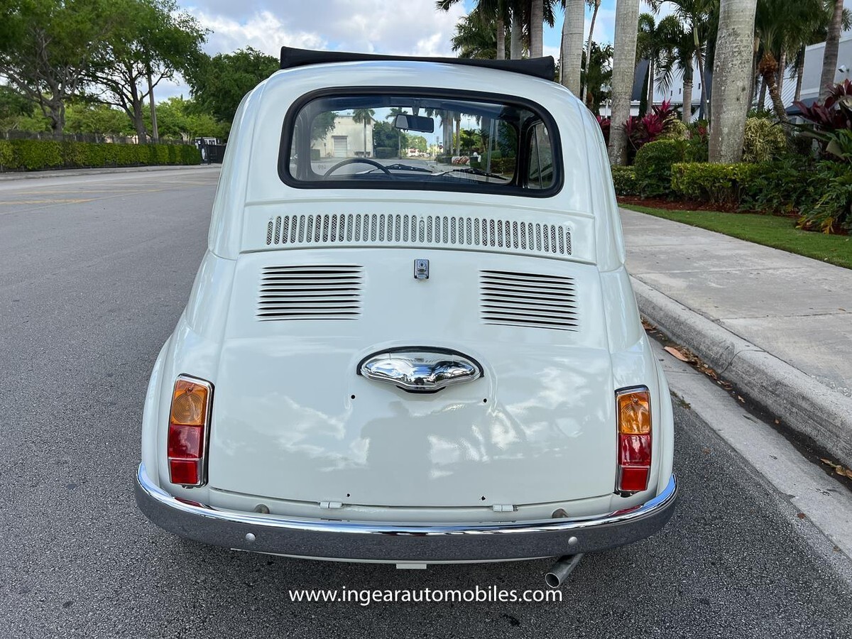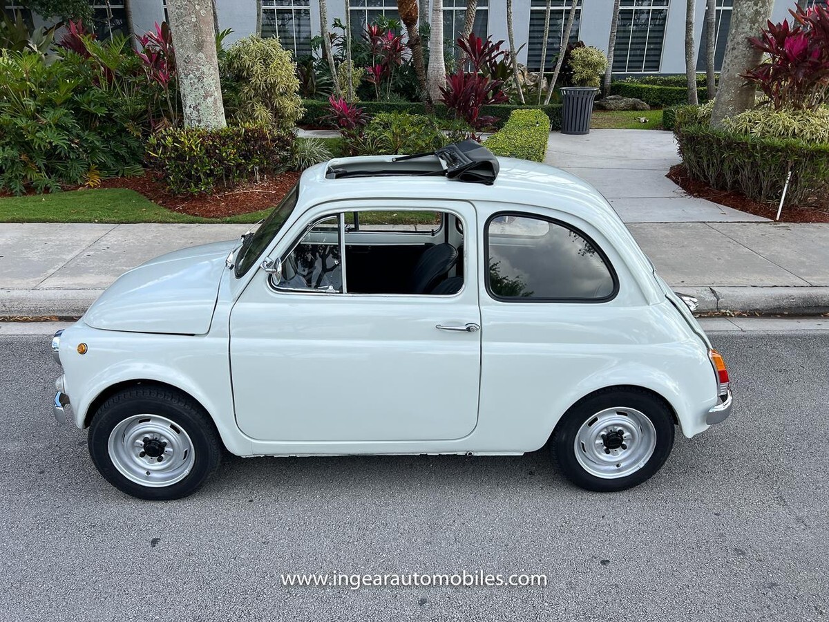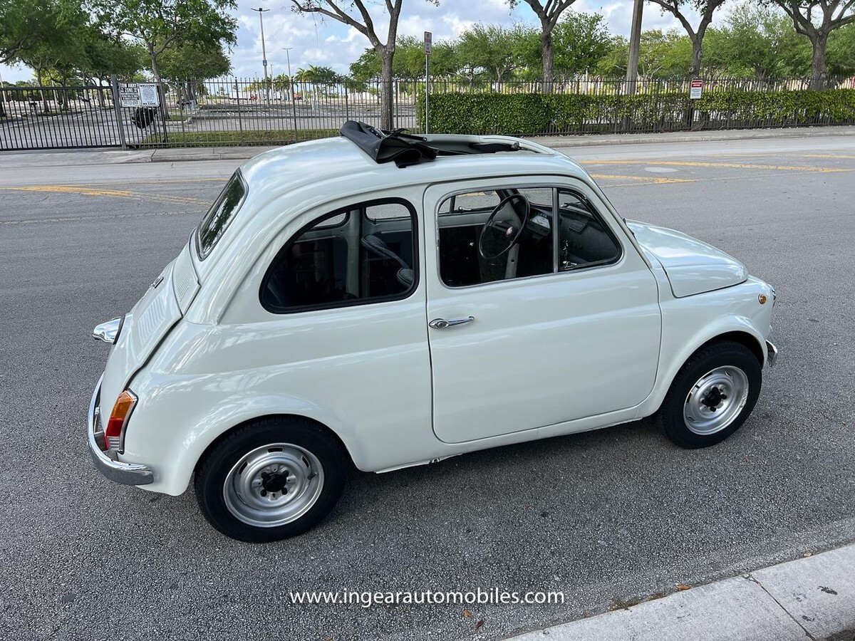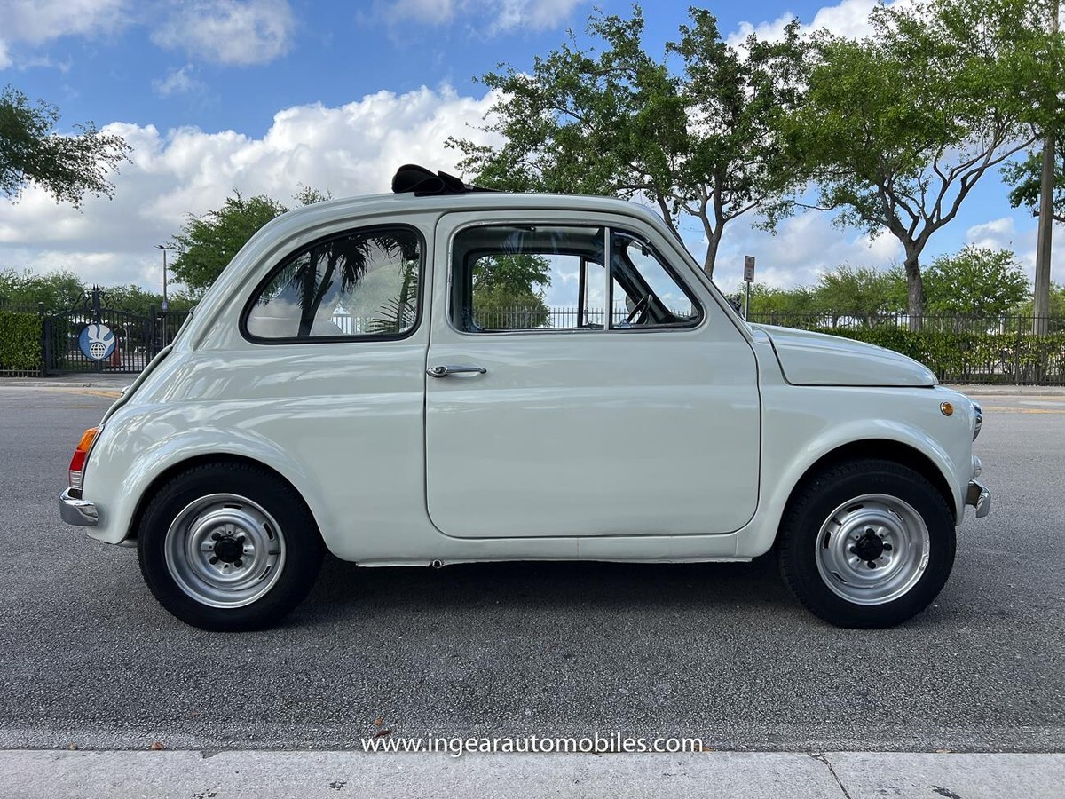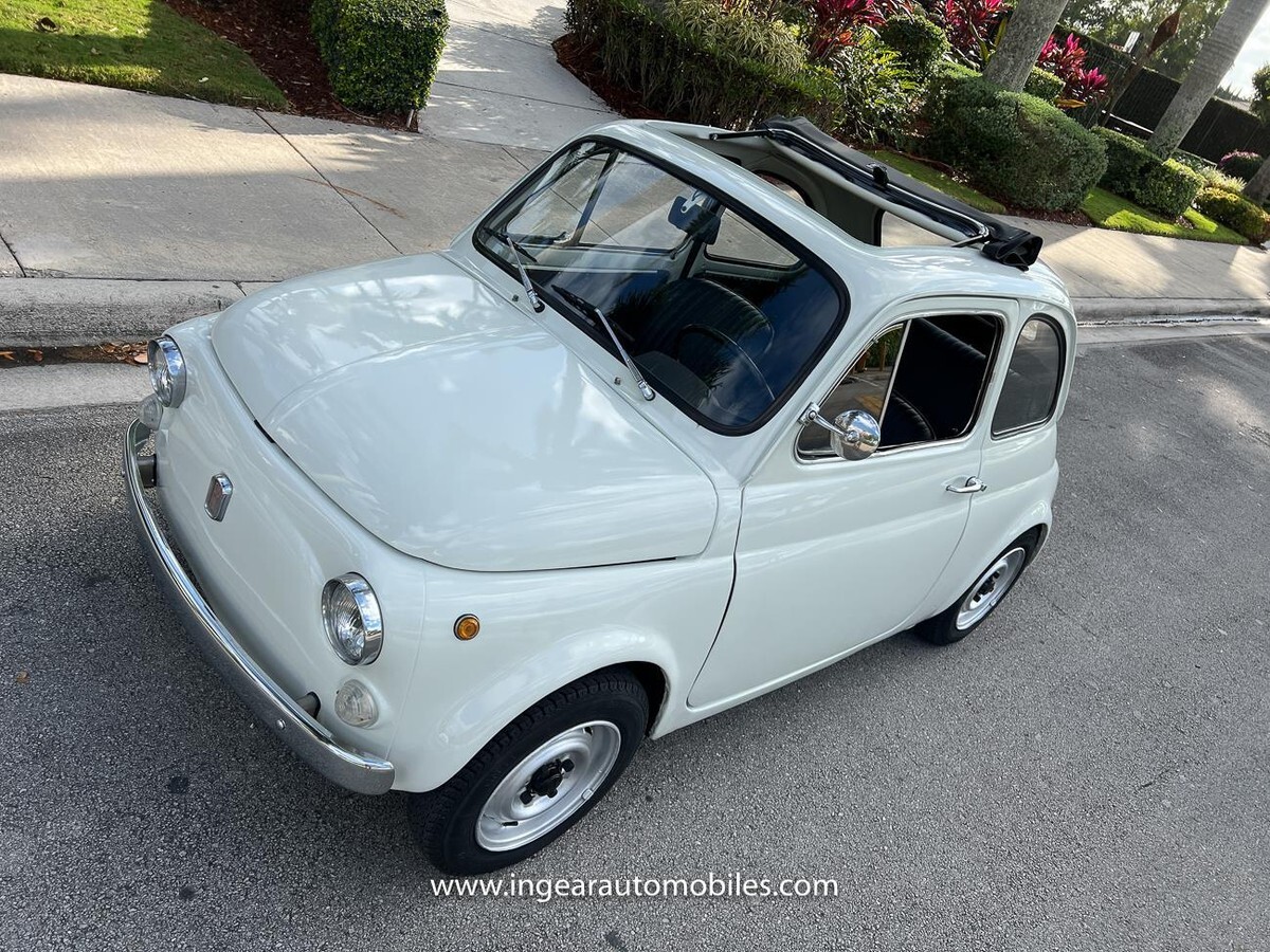 Vehicle Original VIN : 1970FIATCall me 305-542-5662. Up for sale is a really cool 1970 Fiat 500 ragtop in white with black ragtop, and Black interior. Very few in this color combination! Super fun and one of the world’s finest attractive micro cars!Check out the walk-around Video!Take it to the car and coffee & for weekend cruises. Definitely gets a lot of attention & questions. The Fiat is powered by it’s 500cc engine, air cooled. It has a 4 speed manual transmission. Engine Bay is well detailed. Has a nice exhaust that sounds really nice! See the video.The Fiat received a restoration about 5 years ago. All doors, trunk, hood are all aligned like they should from factory. It has always been garage kept and well taken care. All the exterior chromes, trim, latches, bumperettes are good. Underneath the original floor pans are in good shape!The Interior is splendid and contrast well to the exterior paint, Black sport Italian upholstery has been fitted, and tastefully done, and overall condition looks good. Black roll-up top! See all the pictures for full details.I’m located in Miami about 30 minutes away from the airport. Feel free to come see the car in person. Clean FL title. Any inquires email me. $500 non-refundable deposit required within 24hrs of buying. Sold as is where is. Thanks for looking. If you’re looking to finance I would recommend JJ Best. They finance your classic car or hot rod and are very pleasant to work with. Buyer responsible for arranging shipping or pickup of the vehicle. Like any classic cars it has its normal wear and tear. Call me 305-542-5662 with any questions.