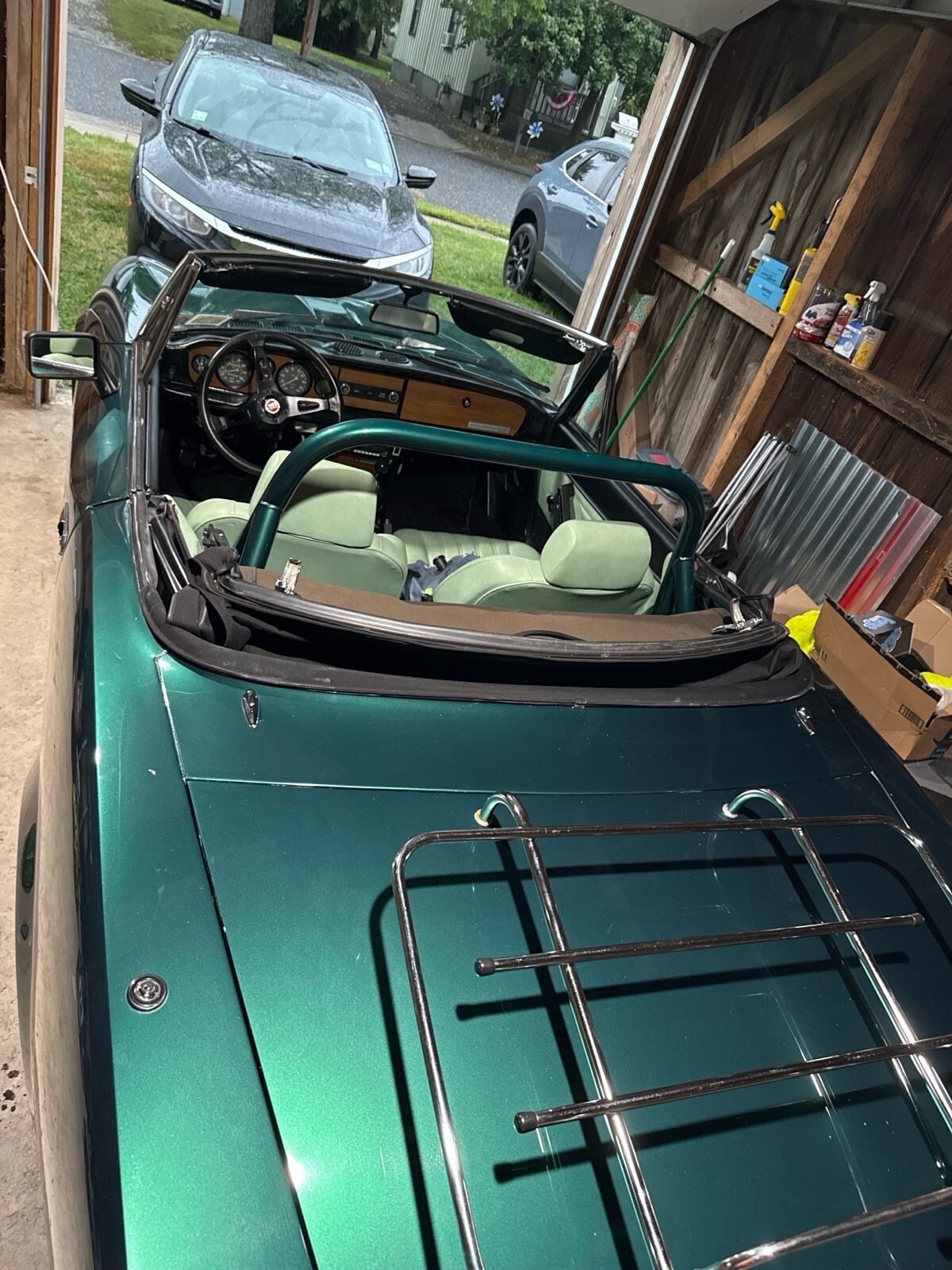 - Exterior: Beautiful British Racing Green paint job in excellent condition. Chrome accents polished and well-maintained.