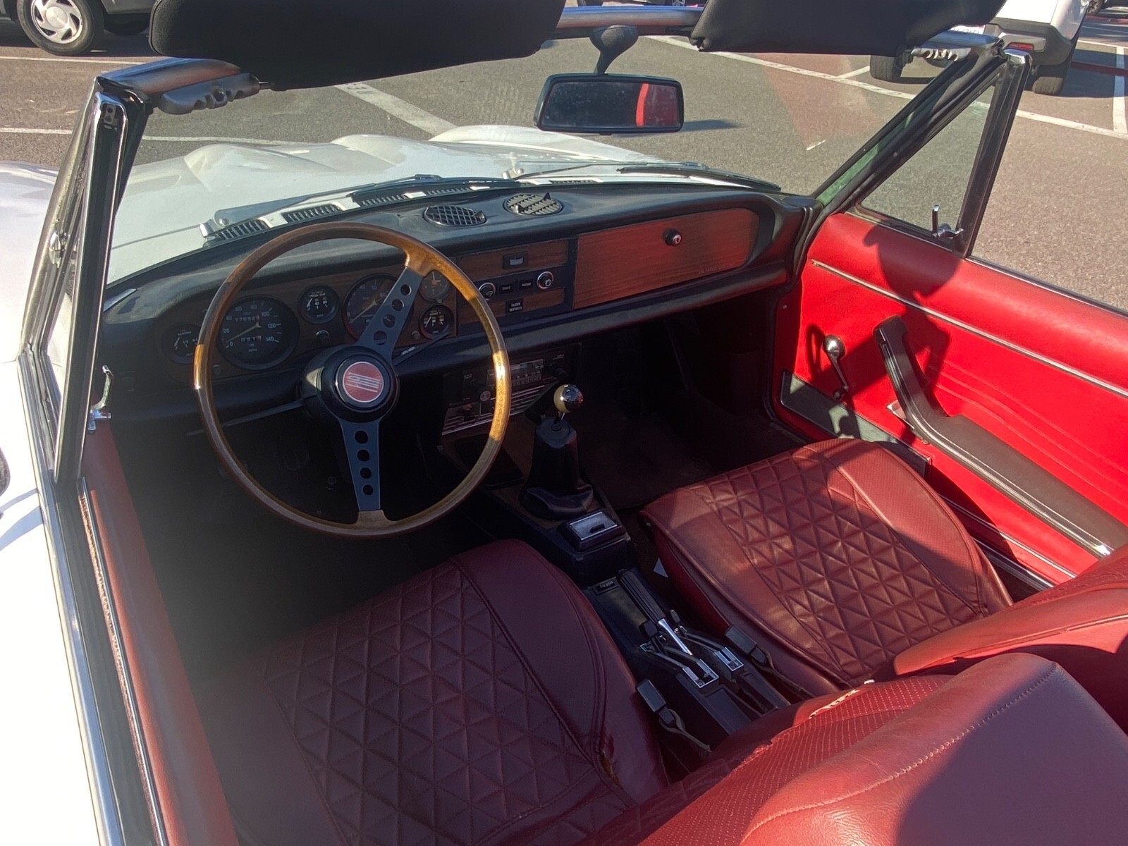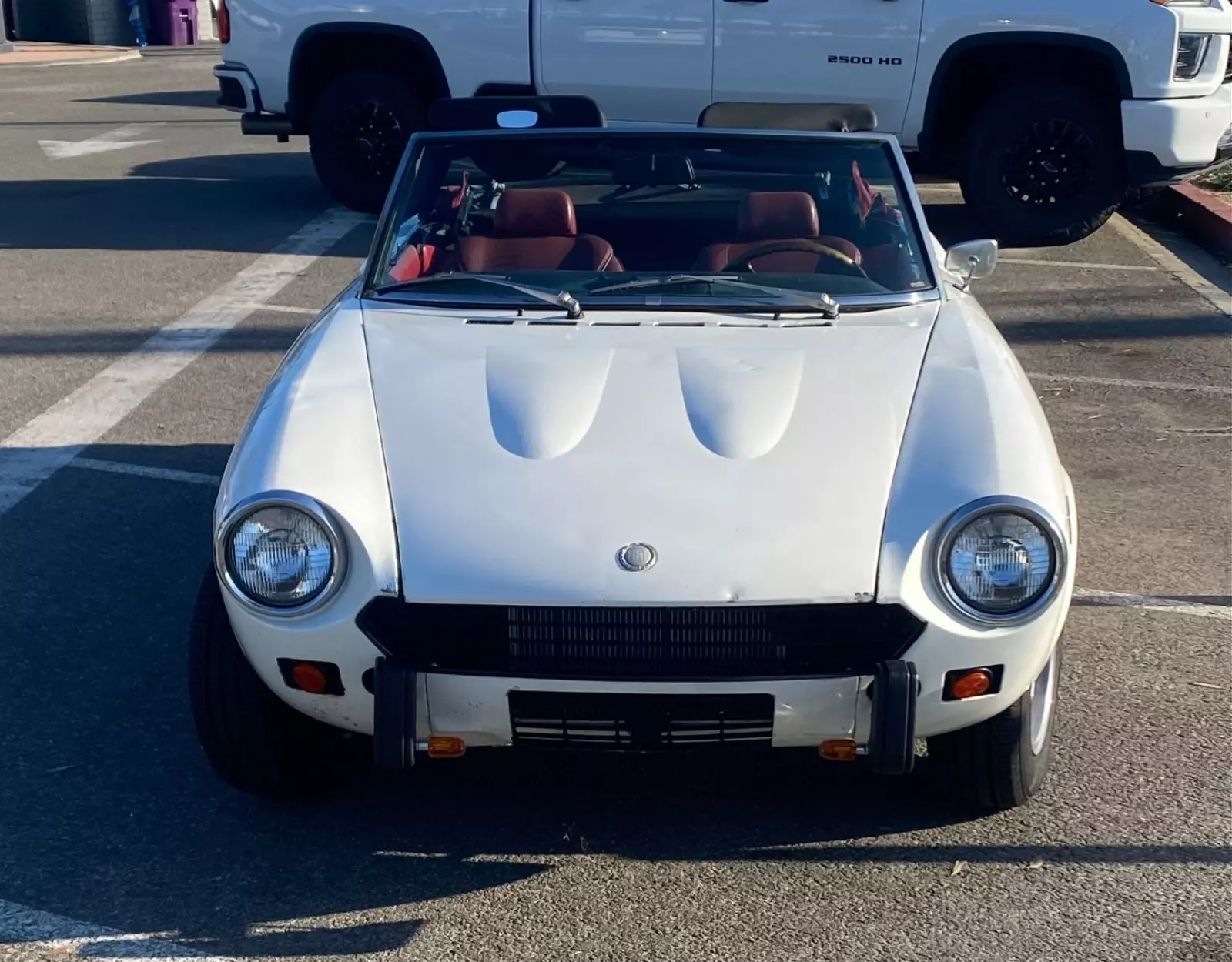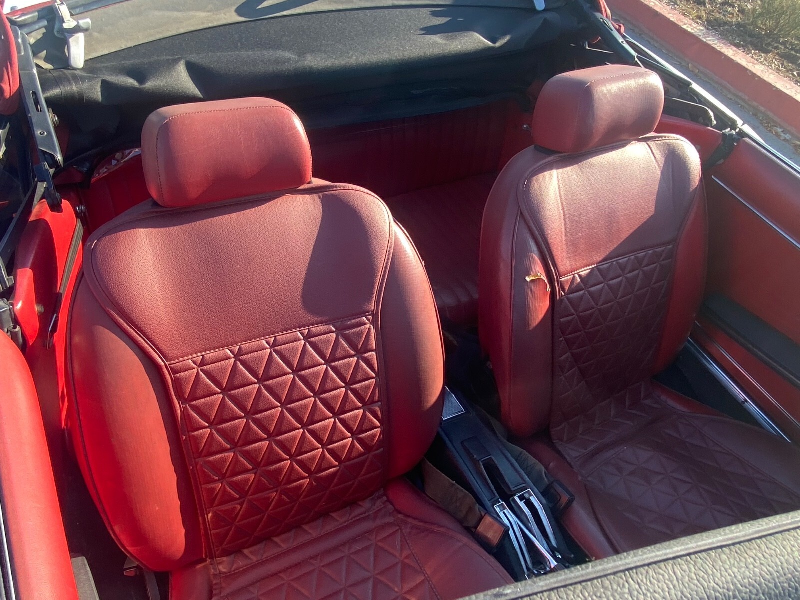 White with red interior, and new red convertible top. Rust free California car. AM/FM Cassette stereo. 4-cylinder DOHC. Very fun to drive, with many, many new parts. This car is in good working order for driving fun as is, and/or wouldn't take much to be fully restored. There are a few chips/dings on the body, as you'd expect of a vehicle of this age. Ignition system has been converted to an electronic ignition. The head and carburetor have been rebuilt. Car passed California Smog. Original bumpers have been removed and are included with the car. Many new parts installed, see below.