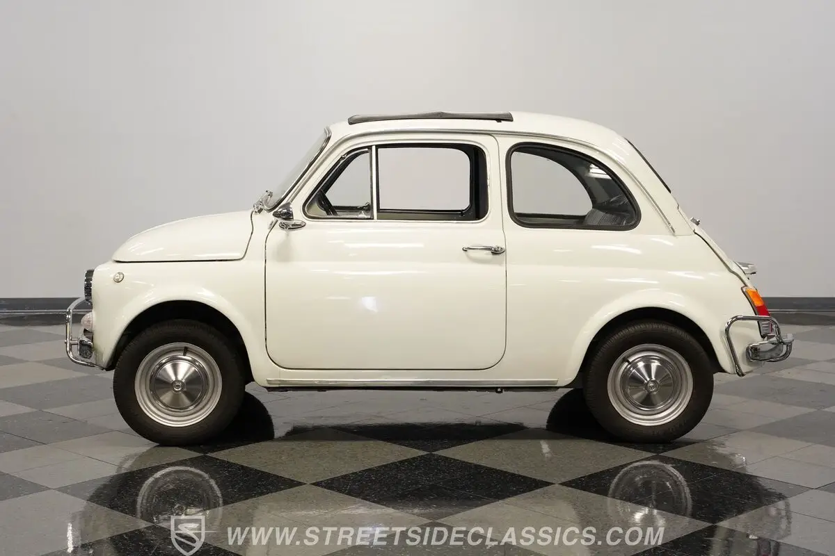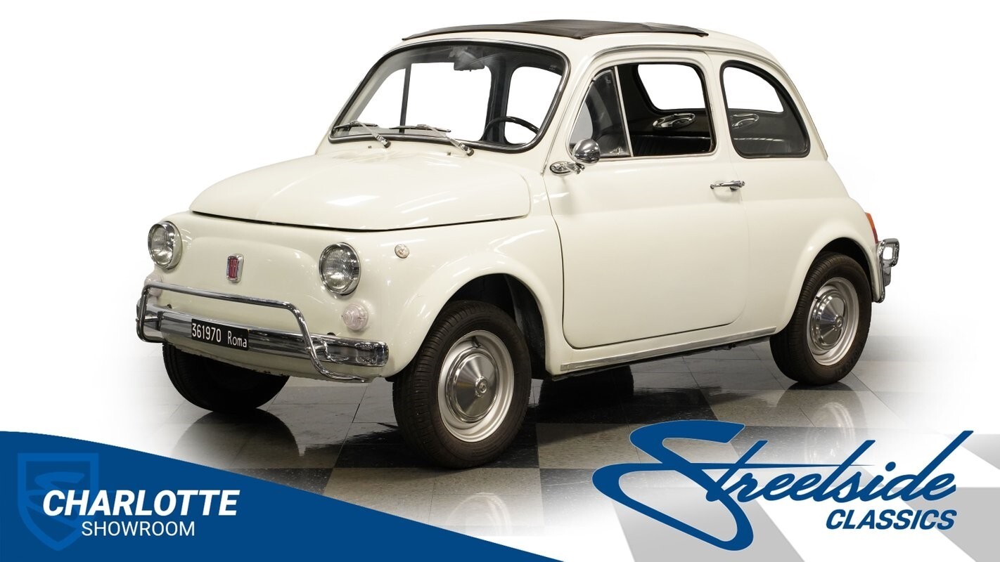 Here's an interesting small car, especially if you like to be different. This 1970 Fiat 500L Lusso is very Plain Jane with a white paint job and white steel wheels with chrome center caps. The chrome bumpers and the brightwork still shine, the badges are present and in the correct spots, and the rear taillights are still looking pretty good. The canvas sunroof is a nice touch-it's fun to have and easy to operate. All in all, this Fiat is just a cool little car.