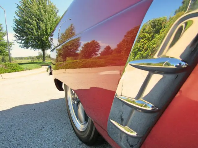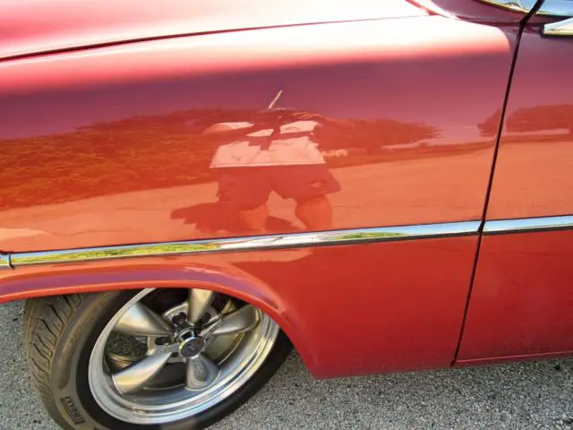 A lot of money was spent to restore the car right, including all new chrome bumpers, bezels, lenses, emblems, weatherstripping, and stainless trim. Taillights are '56 Olds, and ALL glass is new, including front, back, and sides. The front glass is tinted on top, and all side glass is tinted inside (not a film). These things make a HUGE difference vs buying a car that was simply painted and had all the other pieces simply cleaned up/reinstalled.