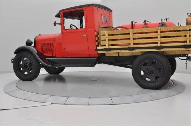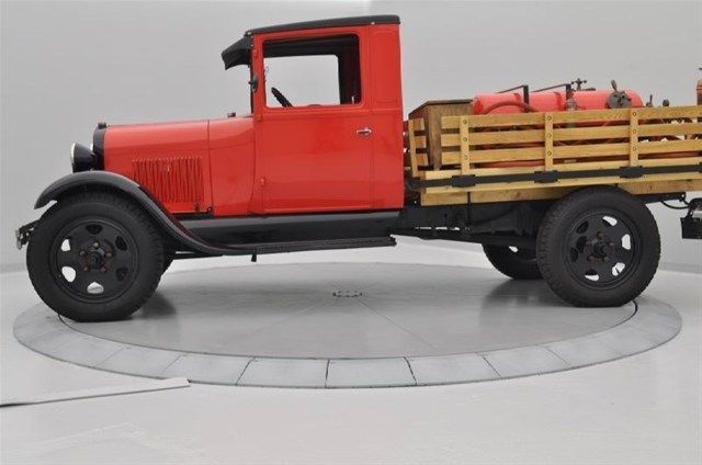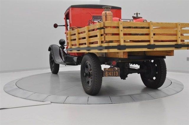 This model AA Fire truck was bought new in 1930 for a fire truck in South Dakota. Its had a frame-off restoration completed by Solid Gold classics in which they made a new flat bed and used the original canisters and original Federal Enterprises, Inc., light and siren model #C6BR and all its original tools, jack, hand crank, tire chains and hoses. Its mounted on new Firestone tires 6.50x20 This model AA Fire Truck was one of the first chemical and foam vessels built for fighting gas fires in South Dakota. This Model AA Ford Fire Truck is powered by the same 201-cubic-inch (3.3 L) engine I4 engine that the Model A Ford used. The engine produced a maximum of forty horsepower at 2,200 rpm. The engine featured an up-draft carburetor, six-volt generator, 2-blade fan, mechanical water pump, mechanical oil pump, electric starter and four-row radiator. All of these features were identical to the Model A Ford except the radiator. The engine could also be crank started if necessary by a hand crank that is inserted through a hole in the radiator shell. The Model AA was based on a chassis that was similar in design to the Model A Ford, except it was substantially larger and heavier to accommodate the work this truck was designed for. Model AA Ford has a four-speed manual gearbox. The transmission is geared lower than the Model A Ford to provide more power to move a loaded truck. This lower gearing reduced the top speed of the truck when compared to the Model A Ford. The transmission also featured a lock-out on the shift knob for reverse that required a lever to be activated with the thumb so reverse could be engaged. This was done to prevent accidental engagement of reverse while the truck was in motion. Early trucks had a worm gear rear-end that limited the top speed of the truck. That rear-end was replaced by a Ring and Pinion rear-end Differential to improve the speed of the truck. Later models were fitted with braces on the outer casing of the rear-end to provide additional support to the rear-end housing. The suspension of the AA Fire Truck was similar to the Model A Ford in the front end. A leaf spring is centered in the front ‘A’ frame over the front axle. Shock absorbers were available for the front end. The rear suspension differed from the Model A Ford. The AA had leaf-springs mounted to the chassis and shackled to the rear-axle. The rear suspension did not have shocks. The controls in the Model AA Ford are entirely mechanical, except the windshield wiper in later models. The brakes are mechanical and the truck has four oversized drum brakes to stop the vehicle. The mechanical system is a pull lever system that applies the force from the pedal to a pivot that pulls the brake rods that expand the brakes in the drums. The brake light is activated when the brake pedal is pushed. The brakes are proportioned more toward the rear drums. The parking brake is a chrome lever on the floor with a release button on the top. The windshield wipers started as hand cranked and later models were a vacuum pump powered from the exhaust line. The horn button is mounted in the middle of the steering wheel assembly. Controls for the lights are also incorporated into the steering assembly. The switch was a three-stop switch for parking lights, headlights and high-beams. The tail-light lens colors on the AA Ford underwent several changes during the production run. Two levers are mounted on the steering column to adjust the engine. The left lever controls the manual advance of the timing. Adjusting the timing of the engine change the time that a spark will occur in the combustion chamber and those changes affect the performance of the engine. The right lever is a manual control for the throttle. The throttle can be adjusted to ease the shifting of the transmission and the idling speed of the engine. Underneath the dash on the right side is the choke rod. The choke can adjust the flow of gasoline from the carburetor into the engine. Turning the knob on the choke rod clockwise closes the fuel flow, leaning out the engine; turning the knob counterclockwise opens the fuel flow to the engine. The gauge cluster in the Model AA Ford includes three basic gauges. The cluster is in a diamond formation, with the start key and pop-out switch is on the left point. The top of the cluster holds the gas gauge, which directly connects into the gas tank, behind the dashboard. The right point holds the amp gauge, which shows the charge rate of the generator. The bottom of the dash holds the speedometer and odometer. Additional gauges can be mounted below the cluster if desired. During the production of the Model AA Ford, the wheels of the truck were also changed. Spoke wheels similar in appearance to Model A wheels but much heavier were used during the production in 1928–1929. Twenty inch Disc wheels were produced by Budd for Ford. In 1930, a new style of disc wheel was adopted. These wheels were used for 1930 and part of 1931. The final wheels used were a further modification of the 1930 wheel with a raised center to reinforce the wheel. Wheel nuts changed with each new style of wheel to meet the changes made in the designs of the wheel. Special wheels were produced for Ambulances and Funeral Coaches. In 1930–1931 a dual-wheel adapter was developed and used for a variety of body styles, including dump-trucks, Fire trucks and Stake Trucks. contact Kennith Stewart at 1-877-689-6930 for more information.