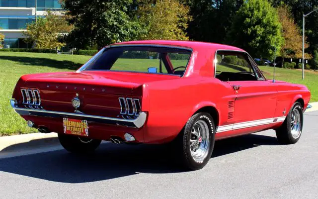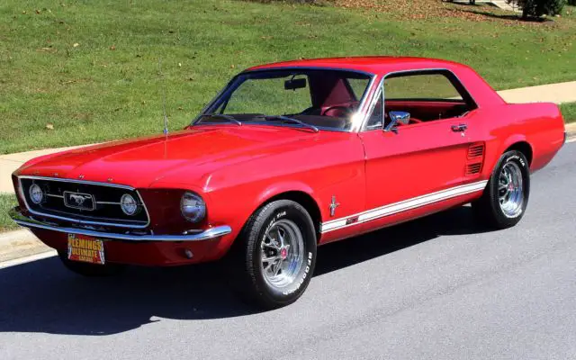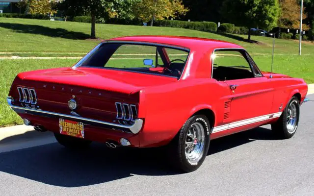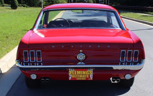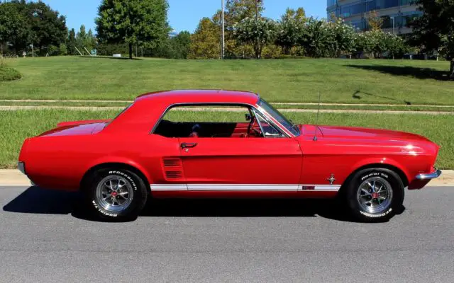 Professional recent restoration of this 390 Big-Block Mustang ( look under this car) Ultra rare 1 of 542 built with this engine/transmission combination (472,121 Mustangs built that year!) Original S-code 390cid V-8 @ 320hp, Original matching #s HD manual trans, Original D-code Limited-slip rear diff, Mirror finish, correct T-code Candy Apple red paint with White GT stripes show waxed, Great looking, correct Red Bucket seat interior with full console Full array of factory gauges including 120MPH speedo, oil, volts, temp, and fuel, Original style Mustang GT steering wheel, Show ready detailed engine compartment, Detailed trunk compartment w/Tartan mat, Correct Pony wheels with BFG Radial T/As, Great sounding dual exhaust, professionally reproduced and restored, Full Marti Report for authenticity & folder full of Docs, Show or drive this fast and great sounding ultra rare "S" code big block 67 Mustang GT 390!