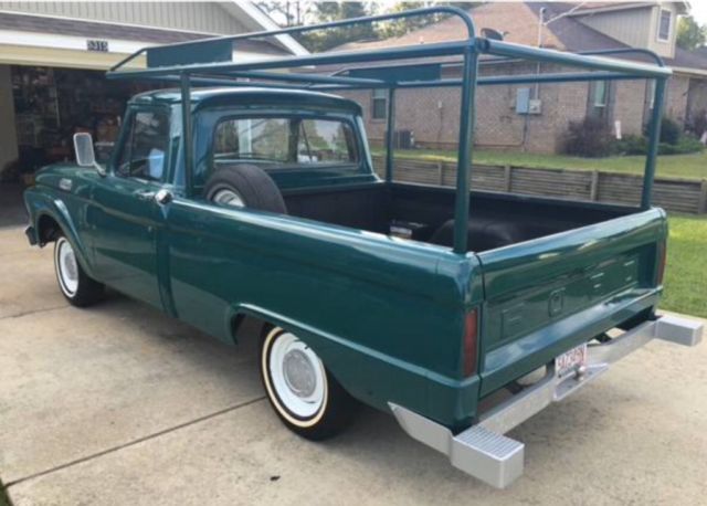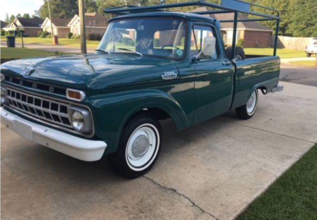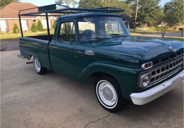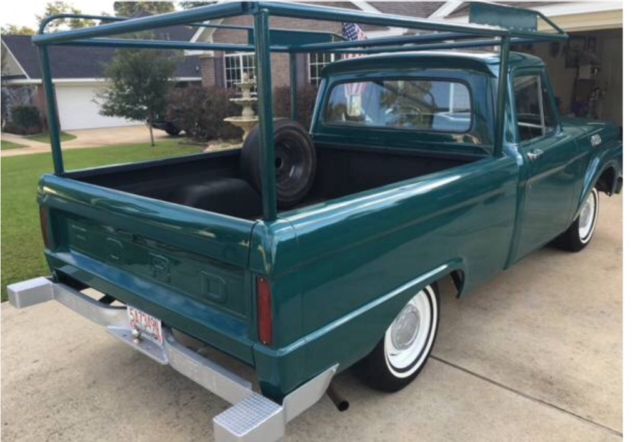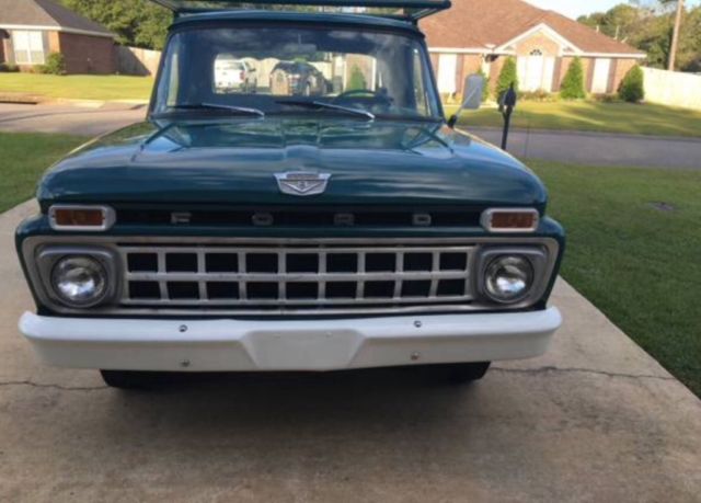 This was recently a one owner truck. This 1964 F-100 was purchased in November of 1963 at Gaston Motor Co. in Fairhope,AL(the Ford dealer in Baldwin County before Bay View Ford / Sandy Sansing Ford). The truck was repainted its original colors a few years ago and a nice clear coat was added along with a few new components under the hood(i.e. New internals for distributor, new plugs and new plus wires, fuel filter, carb was rebuilt) but everything retained its stock look except for the inline fuel filter. The old oil soaked air filter is still under the hood.