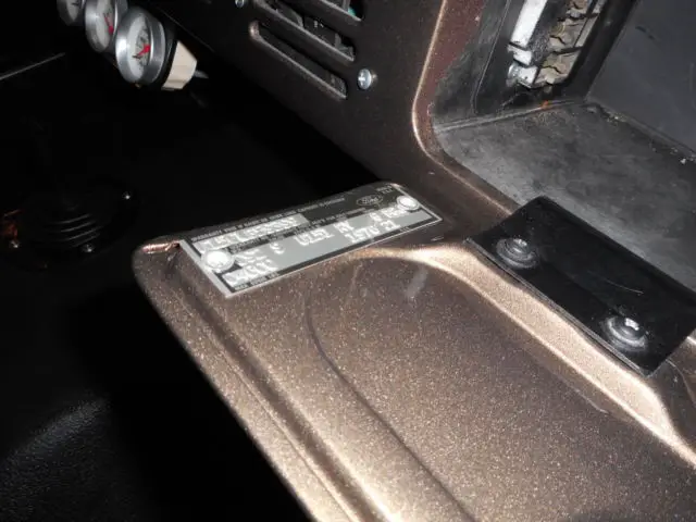 Midnight Blue Metallic Paint was the original color. It has been changed to a very pretty dark Green with Gold Fendercovers and Gold Painted Top.Black Interior.